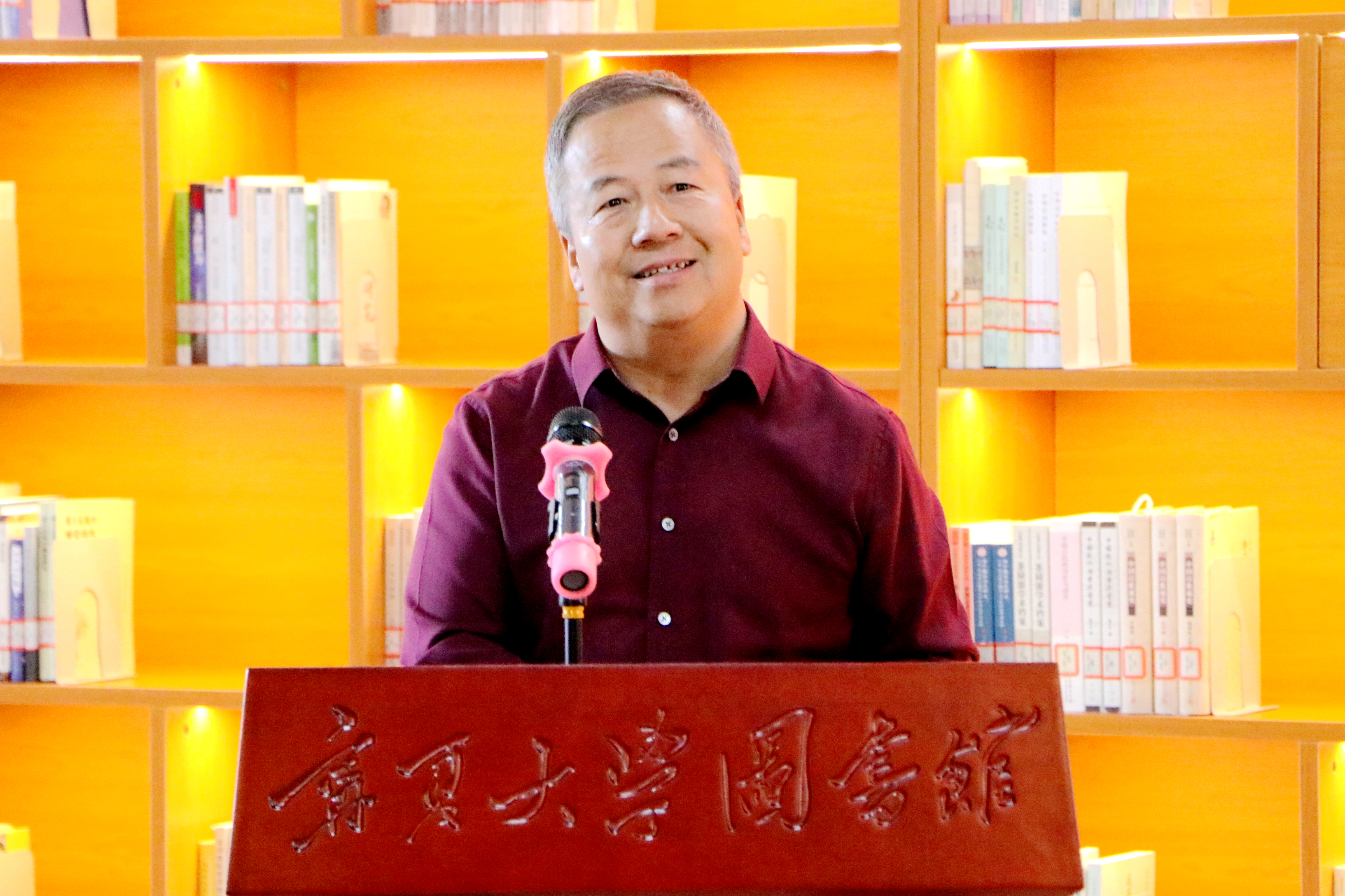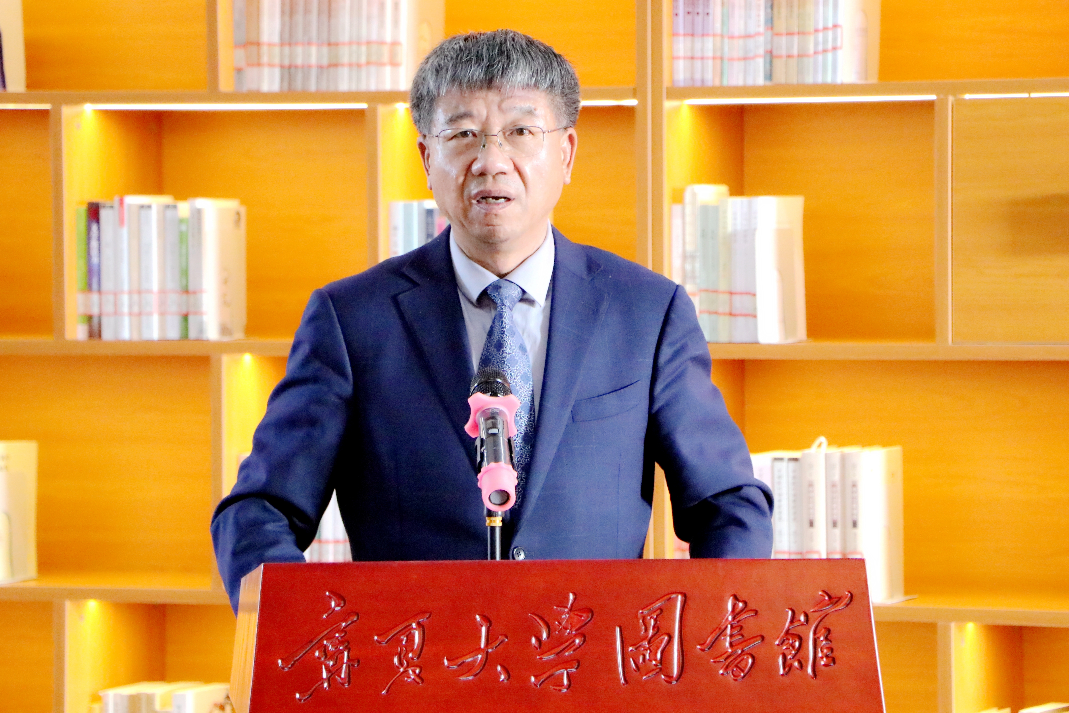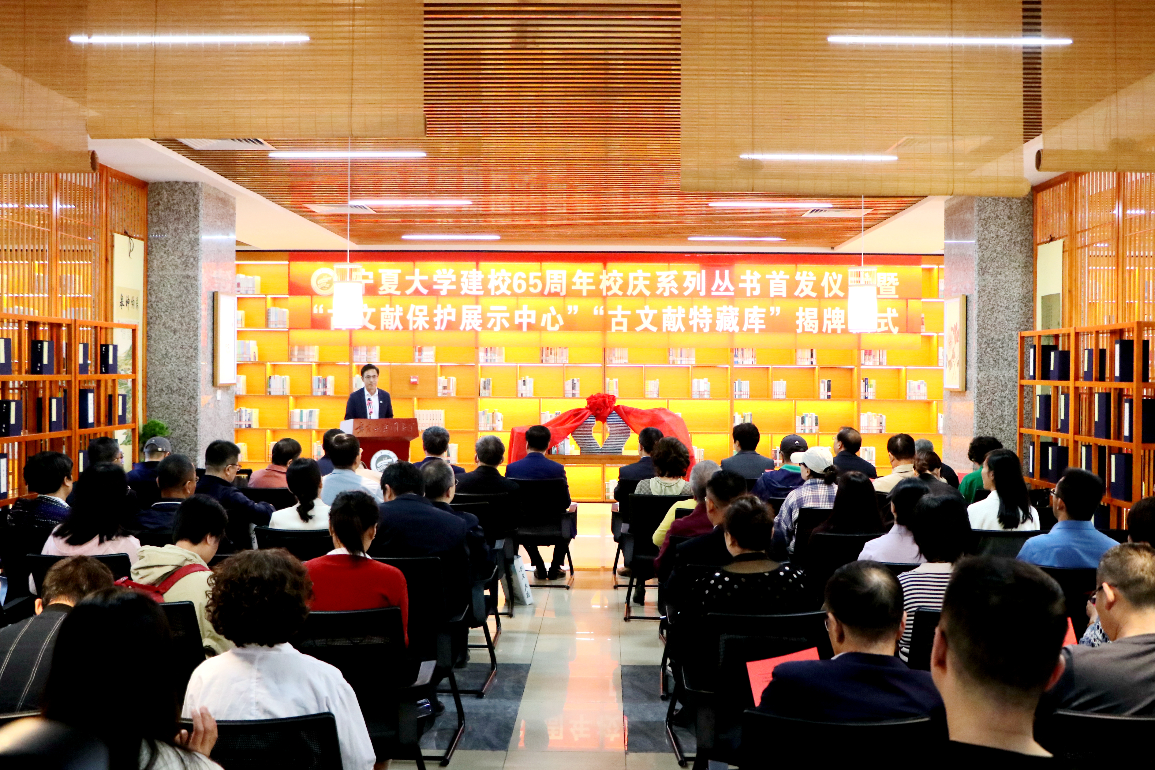周震在致辞中介绍了系列丛书的编撰整理及出版情况。他表示,丛书首发和“古文献保护展示中心”“古文献特藏库”的建成揭牌,是学校建校65周年文化校庆重要内容之一,是贯彻落实国家“十三五”时期全国古籍保护工作规划的一项重要成果,既传承发扬了宁大人精神谱系,也是服务学校人才培养、学校建设以及宁夏地区历史文化研究的重要举措,对于凝心聚力、鼓舞人心、振奋精神,加快提升学校“双一流”建设水平,传承优秀传统文化,促进宁夏历史文化研究意义重大。