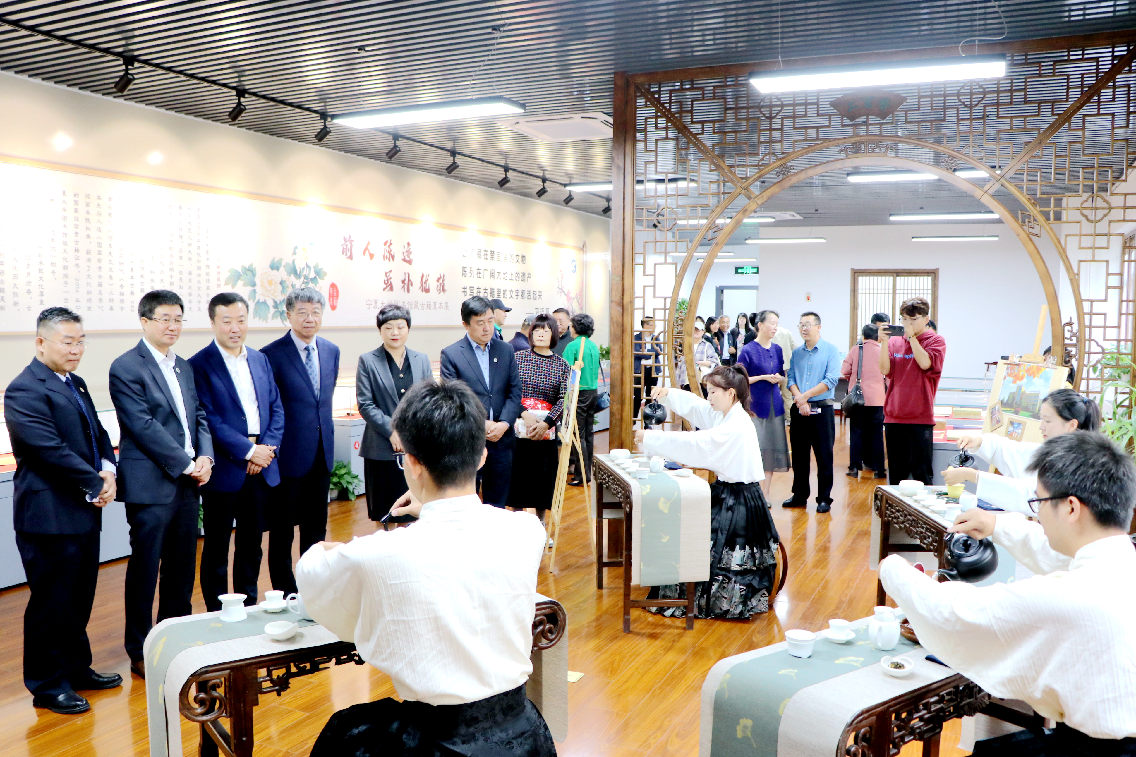 仪式结束,与会人员一同参观了古文献保护展示中心和古文献特藏库,欣赏了“古籍的故事”茶艺表演。