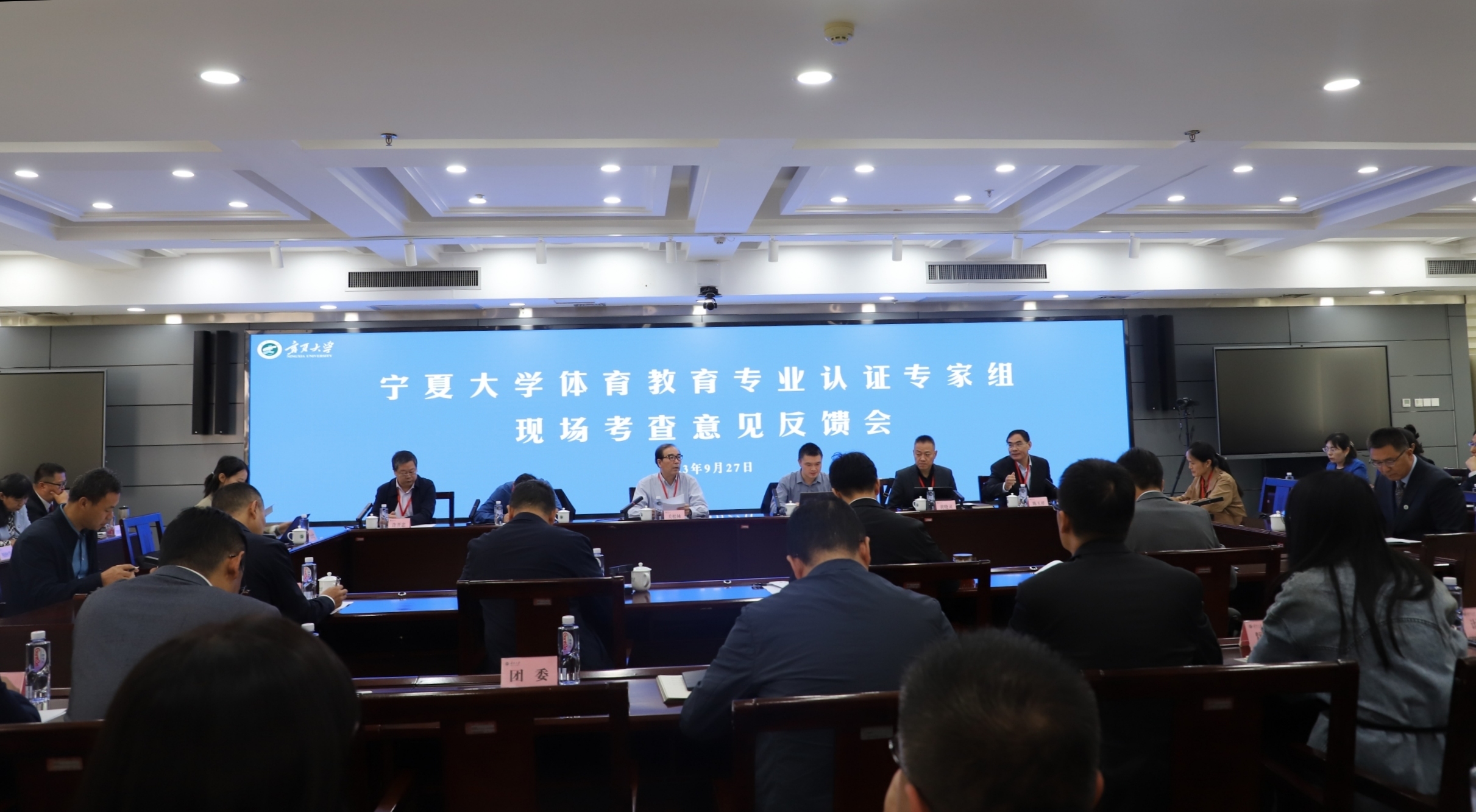 【beat365唯一官方网站新闻中心讯 王文娣/文、图】9月27日,体育教育专业认证专家组现场考查意见反馈会在德勤楼六楼会议室举行。认证专业专家组全体成员,自治区教育厅教师工作处处长臧育海,重庆市教育评估院高等教育评估所副所长田腾飞,校党委副书记、校长彭志科,党委常委、副校长李建设、黄河,党委常委、宣传部部长高永兴出席会议。认证专家组组长、沈阳师范大学原副校长关松林教授主持会议。