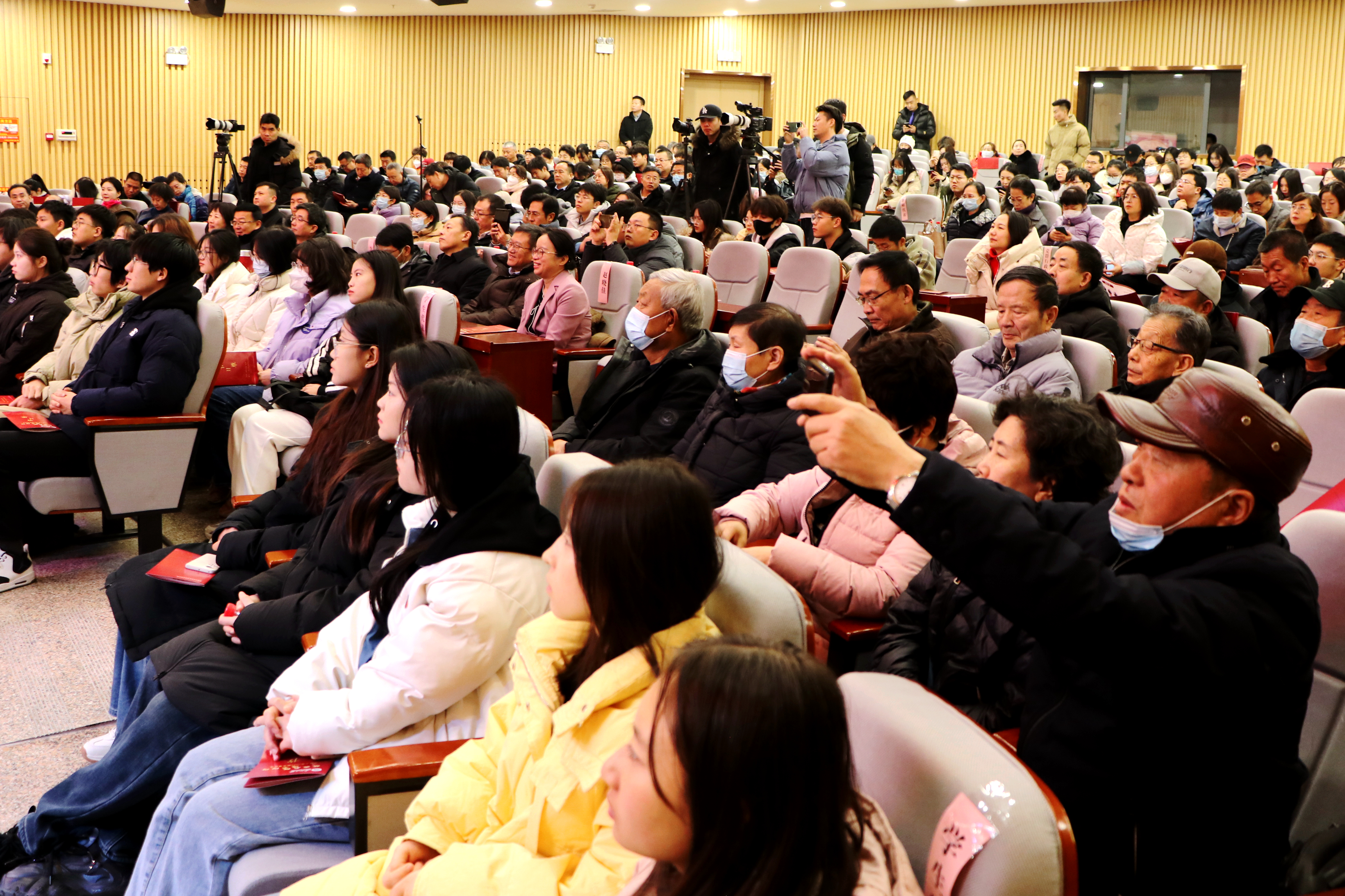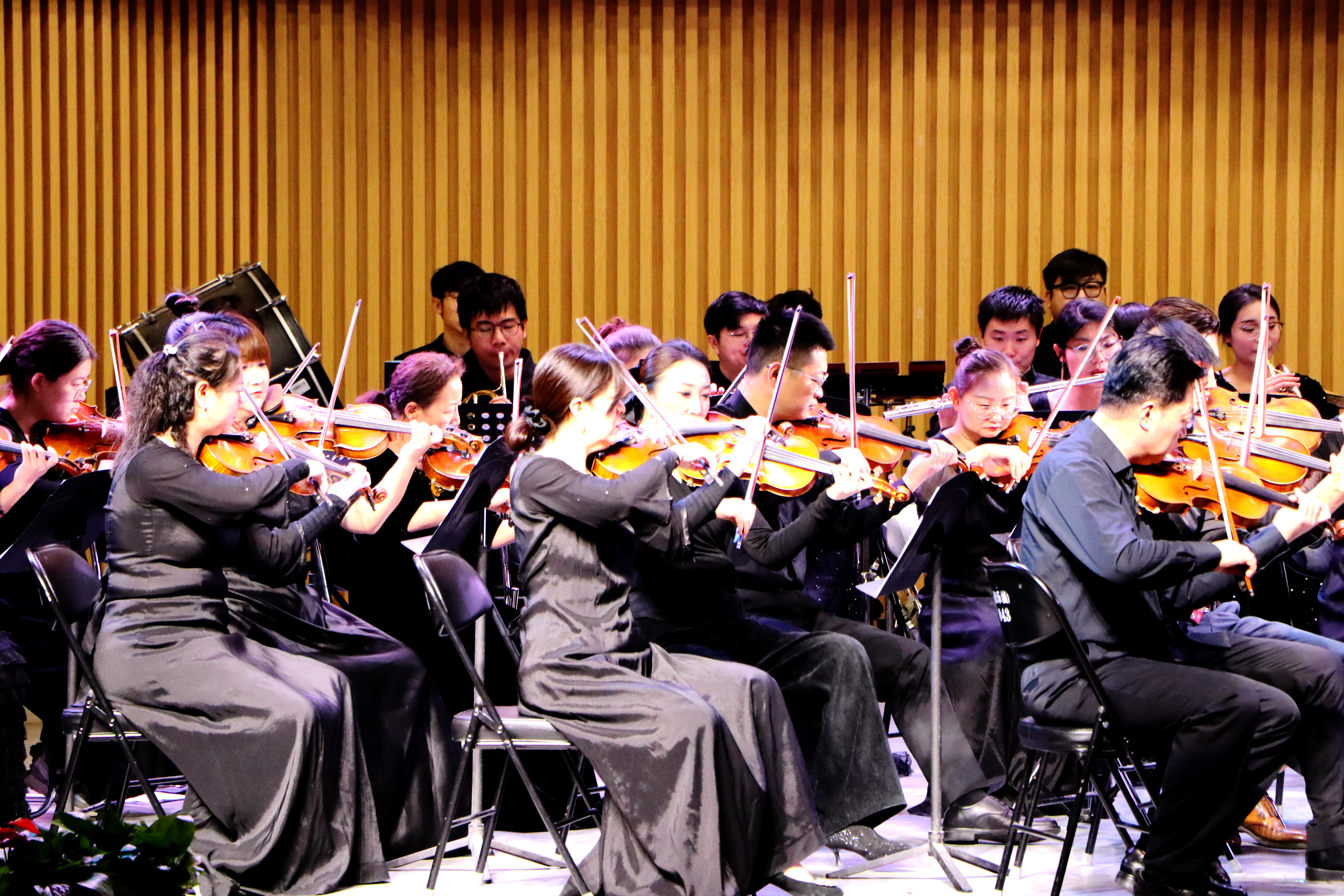 学校党群行政、教学科研、教辅、直属单位党政主要负责人,优秀教师代表、离退休人员代表、党外人士代表、优秀学生代表、劳务派遣人员代表、保卫工作人员代表、后勤工作人员代表现场观看音乐会。