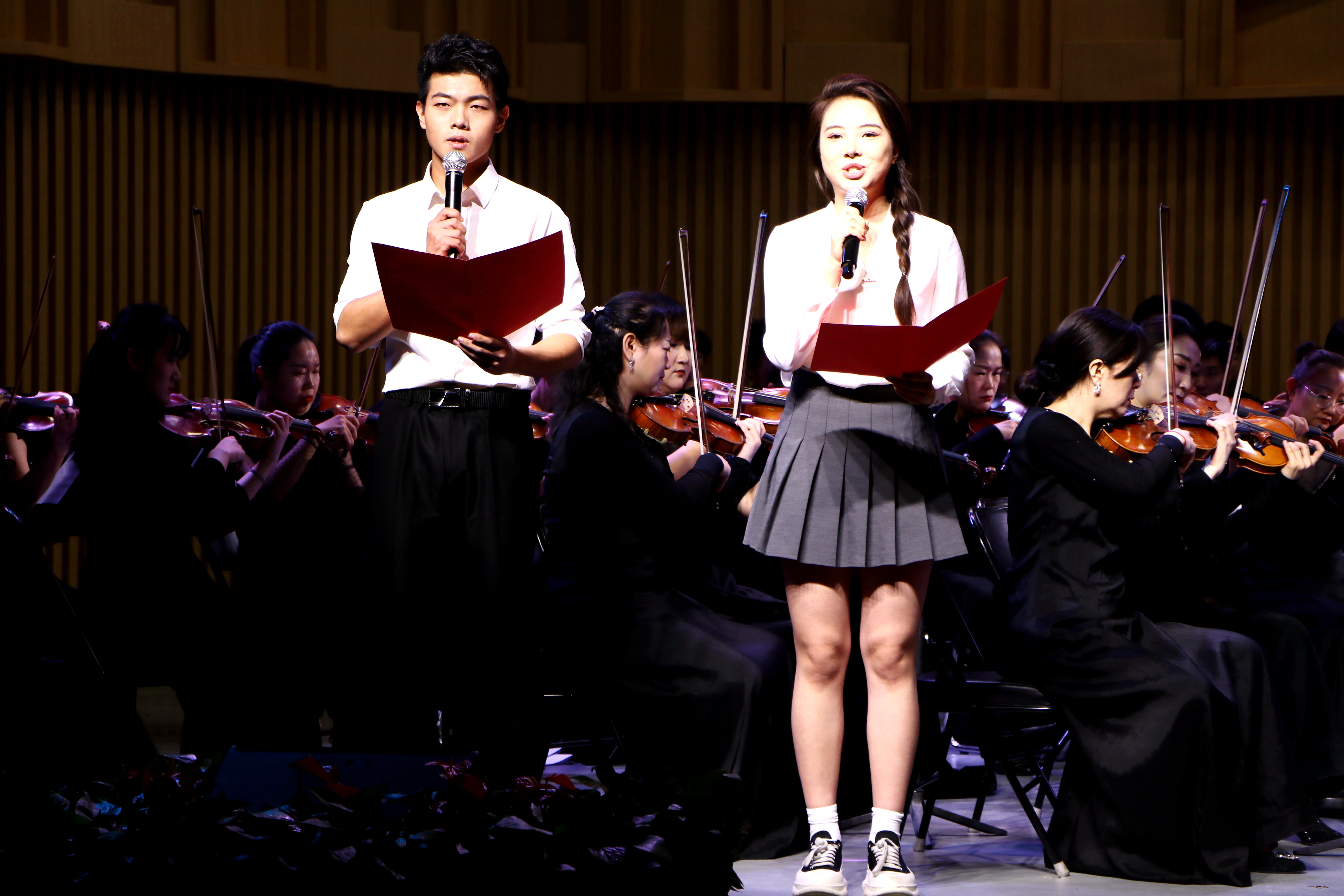 音乐会上半场,民乐合奏《西夏王》将宁夏地区花儿音乐元素重构化运用,在跌宕起伏的节奏和优美动听的旋律中再现了古代西夏王朝的演变历程;古筝独奏《望秦川》以古朴、苍劲的陕西同州梆子音乐为素材,流露着对故人无限的缅怀之情;声乐独唱《雪白的鸽子》以高亢悠扬、旋律优美灵动的歌声表达了对美好生活的向往与追求;室内乐《花儿为什么这样红》,以小提琴的独特音色,凸显了塔吉克族的民歌特色,情感真挚地赞美了纯洁的友谊和爱情;混声合唱《山海情歌》以闽宁合作为时代背景,讴歌了山区各族群众在党和政府的带领和福建人民的帮扶下,脚踏实地加油干、久久为功不放松的脱贫攻坚精神。