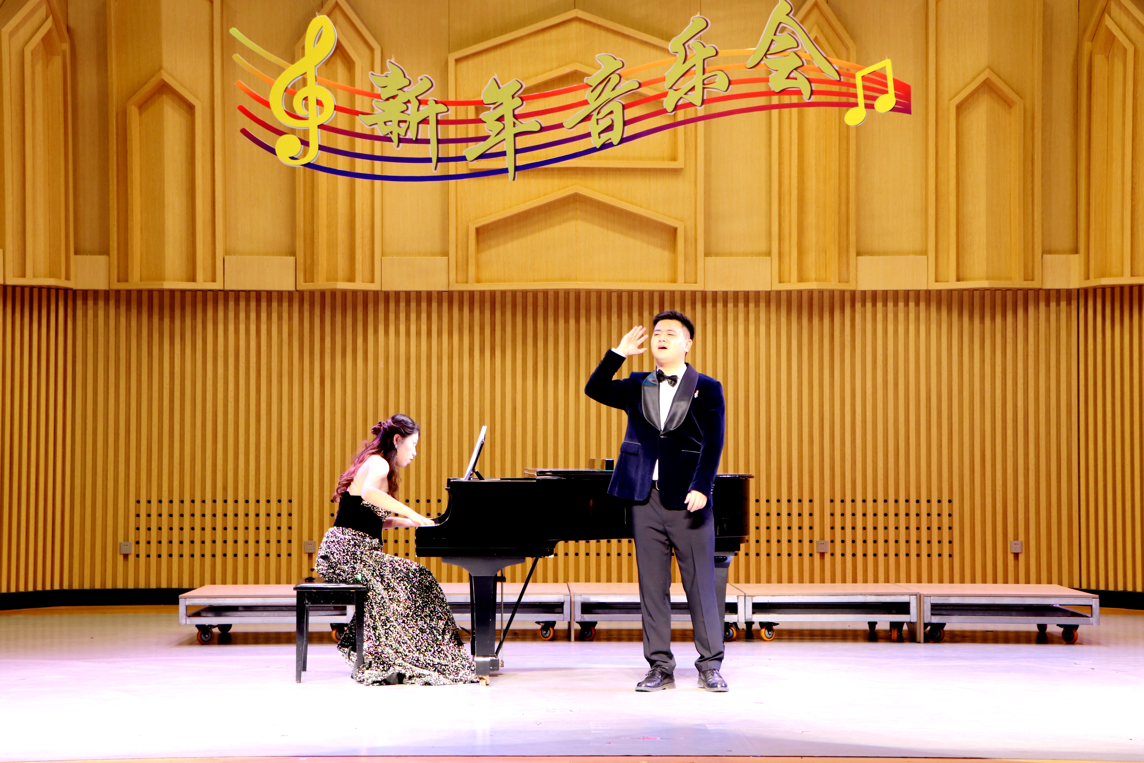 新年音乐会在音乐学院教师联袂献上的男女重唱《领航》中落下帷幕,高亢的歌声、深情的旋律表达了beat365唯一官方网站师生对党和国家的崇敬热爱和衷心祝福。