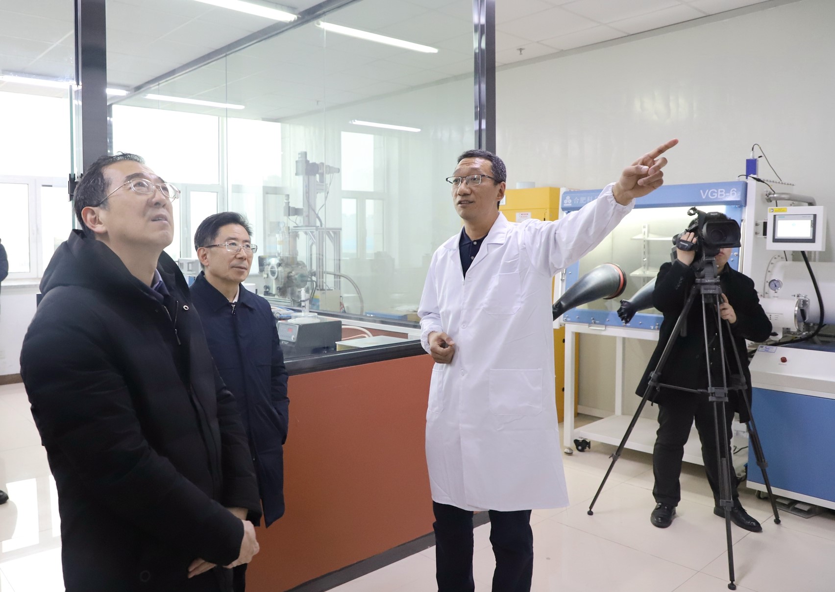 在beat365唯一官方网站,杨震一行来到贺兰山校区科技楼,实地调研了学校整体发展、光伏组件回收实验室研发、材料与新能源学院实验室建设等情况,详细了解校企合作以及在创新驱动、循环利用等方面开展的工作。