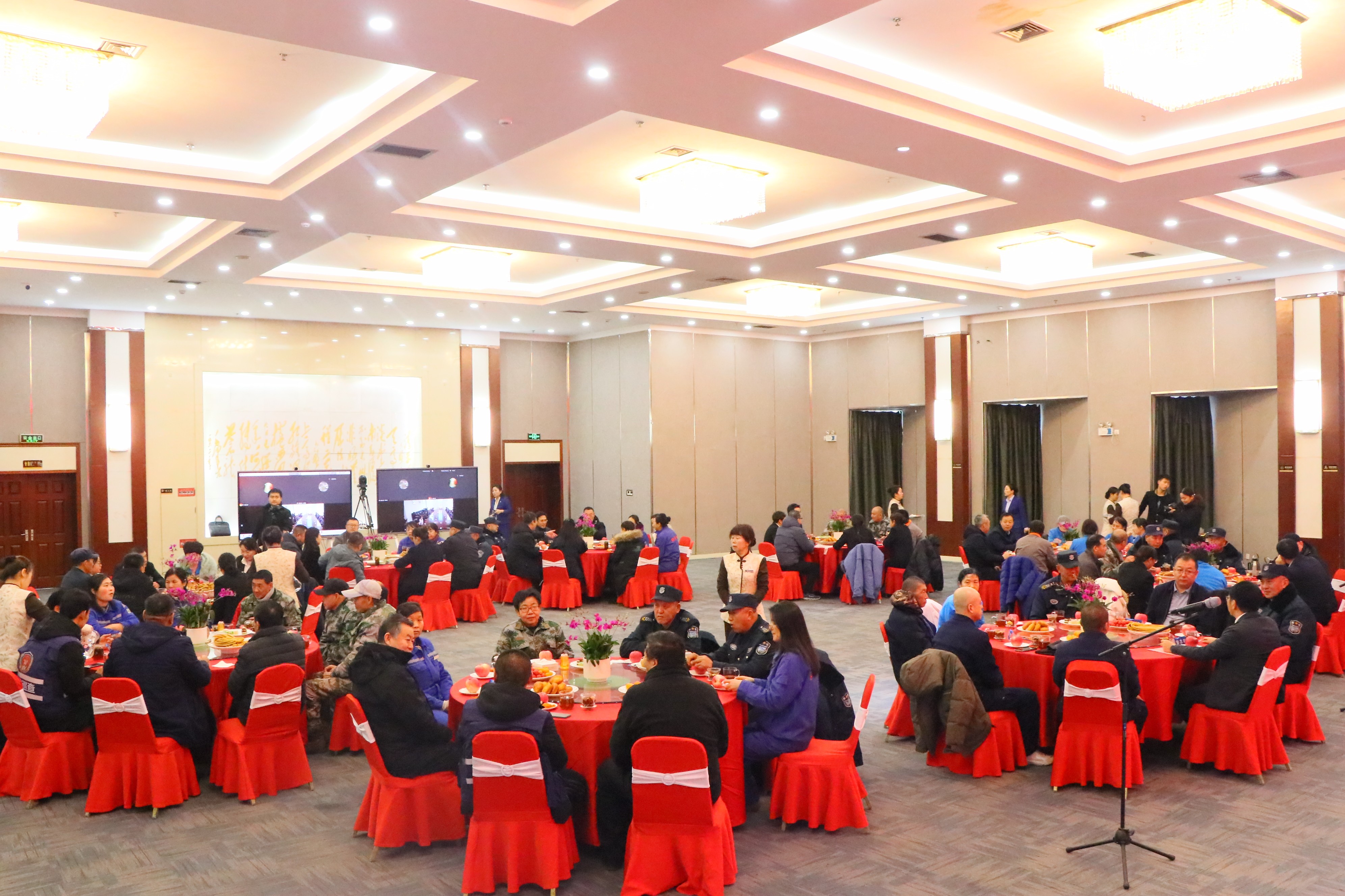 慰问现场,与会领导与同桌教职工代表亲切交流,询问他们的工作、生活情况,倾听他们的心声,并送上新春祝福和春节慰问品。