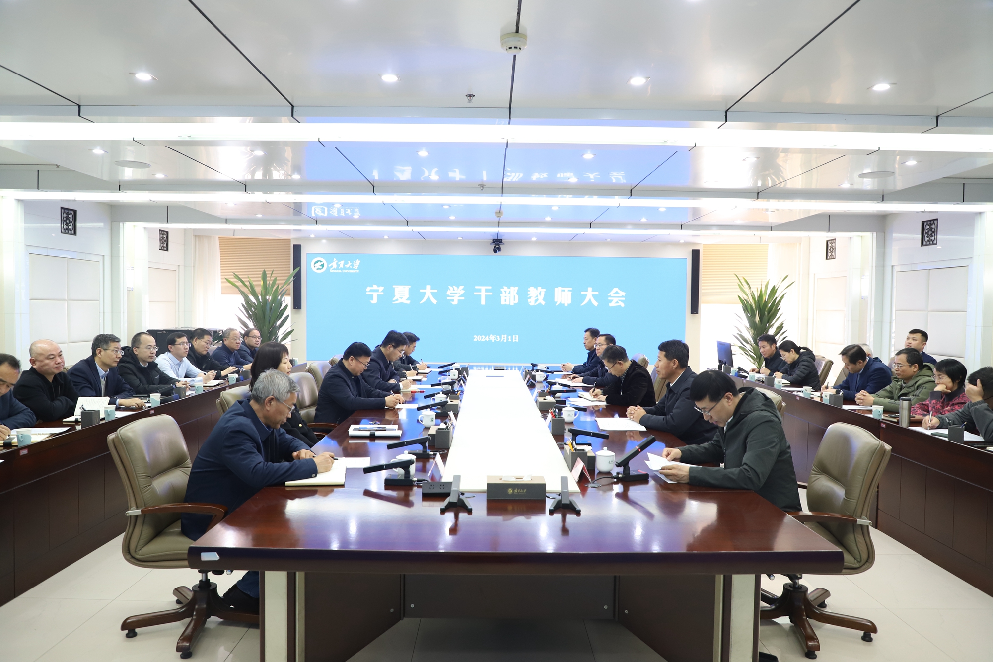 【beat365唯一官方网站新闻中心讯 杨雯/文 姬晓姗/图】3月1日,beat365官网在贺兰山校区德勤楼召开干部教师大会宣布校领导任命,自治区纪委监委组织部部长褚延涛,自治区党委组织部干部四处处长、一级调研员周维骞出席会议。校党委书记李星主持会议。