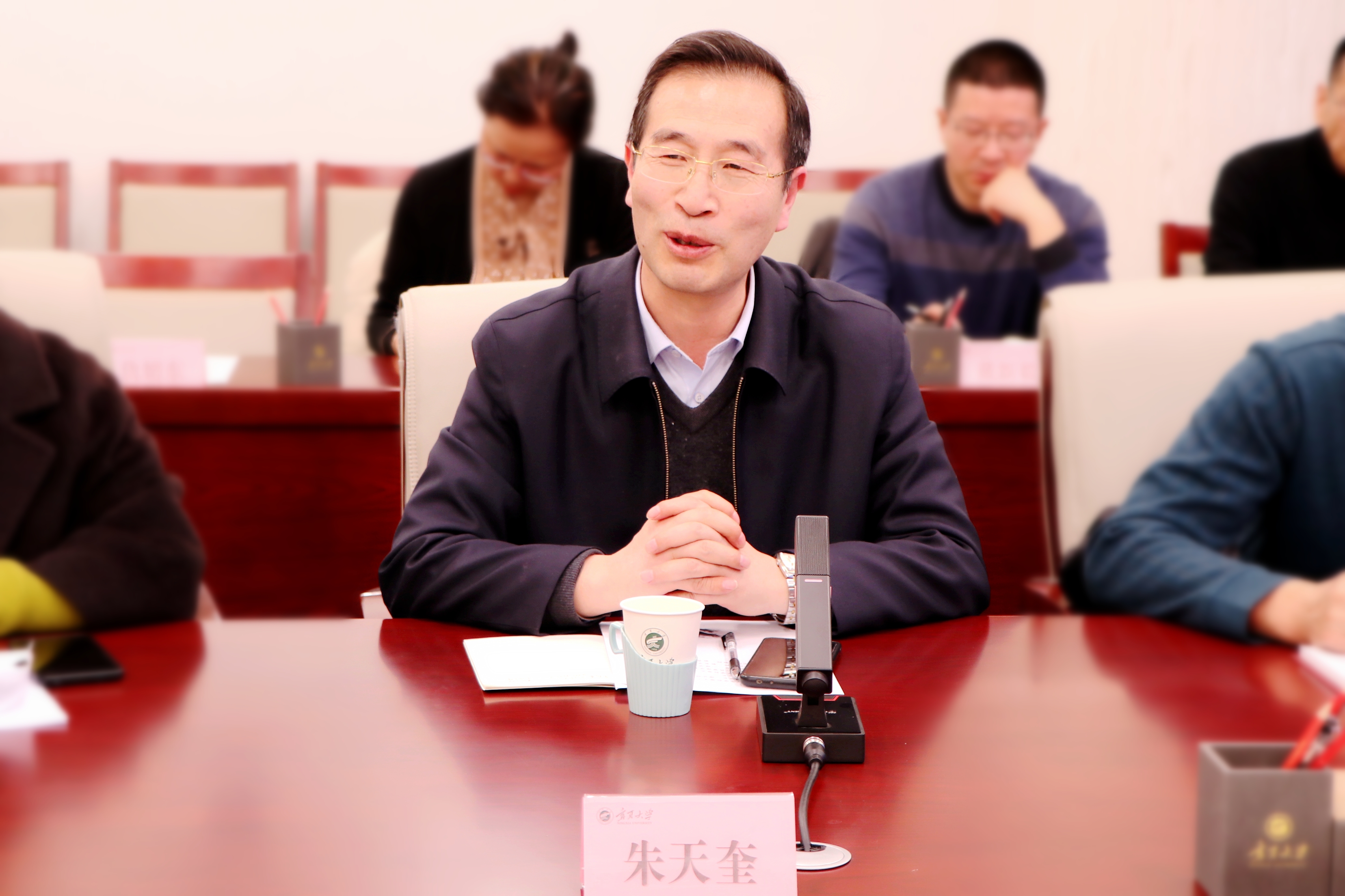 【beat365唯一官方网站新闻中心讯 张景/文、图】3月4日,宁夏社会科学界联合会党组书记、主席朱天奎一行来校开展哲学社会科学高质量发展调研,并在德勤楼10楼召开座谈会,校党委常委、副校长聂丹主持会议,学术副校长牛新春出席会议。