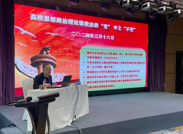 在专题讲座环节,西南大学马克思主义学院何玲玲教授和重庆大学马克思主义学院魏强教授分别作了题为《以马克思主义理论学科建设支撑高校思政课高质量发展》《高校思想政治理论课教法的“变” 中之“不变”》的主旨报告。