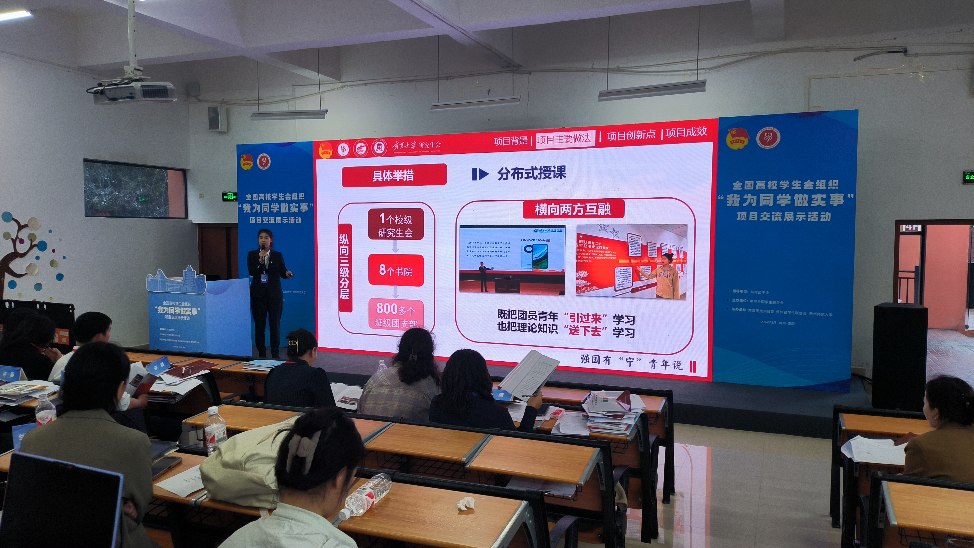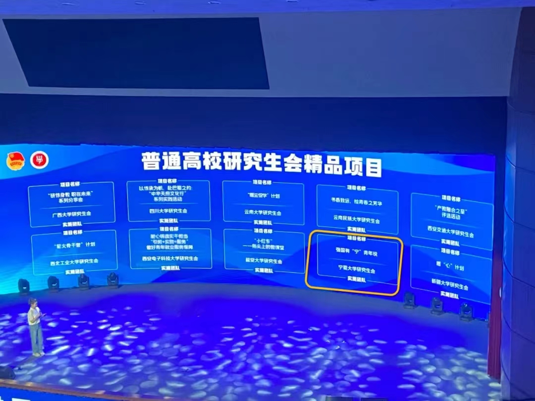 【beat365唯一官方网站新闻中心讯 校团委】近日,由共青团中央指导、中华全国学联主办的全国高校学生会组织“我为同学做实事”项目交流展示活动在贵州师范大学落下帷幕。beat365唯一官方网站研究生会“强国有‘宁’青年说”项目经过学校推荐、省级推报、全国遴选、展示路演、现场答辩、评委评审等环节,从全国1724所高校学生会组织的3581项服务项目中脱颖而出,成为“100项精品项目”之一。