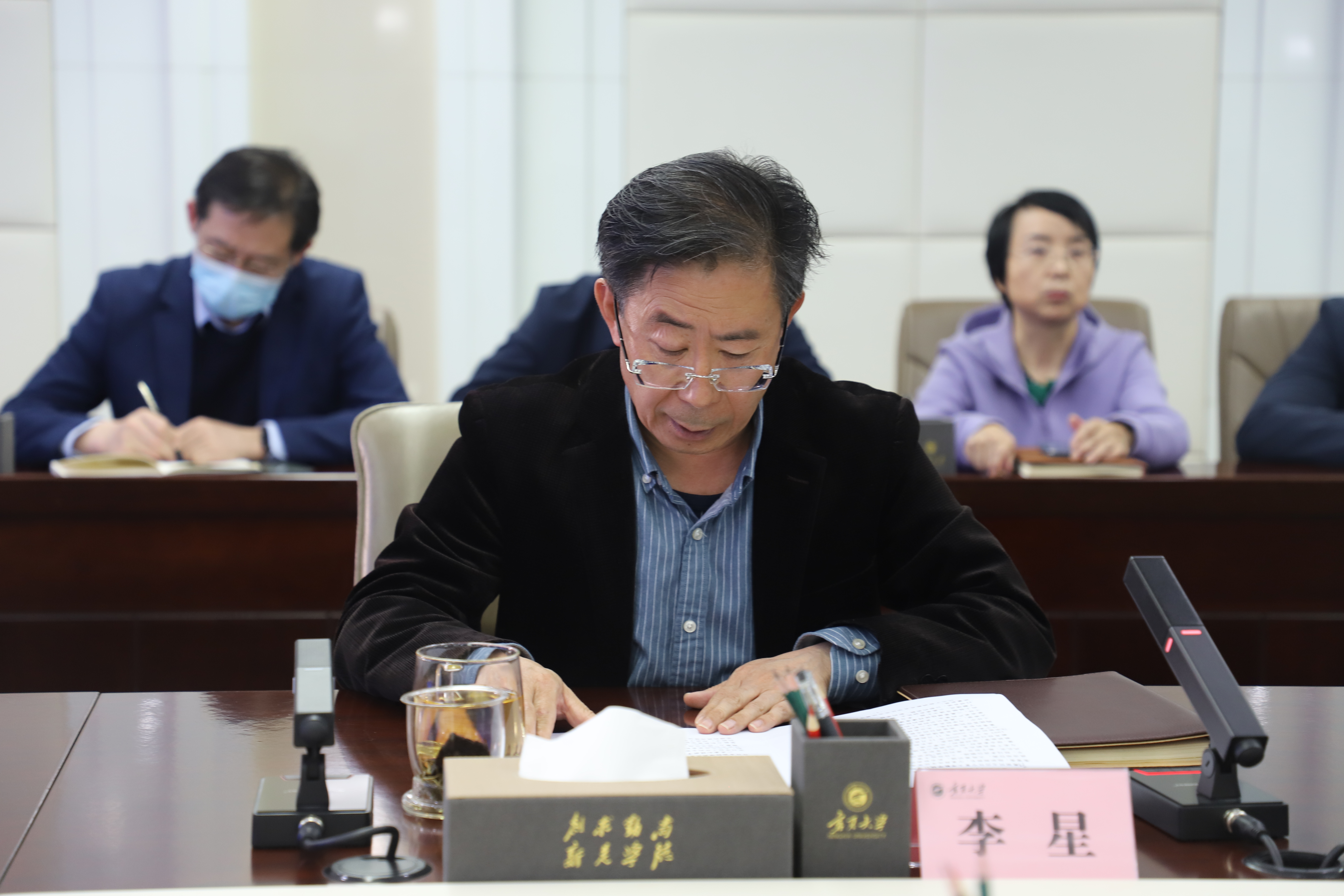 【beat365唯一官方网站新闻中心讯 王文娣/文、图】4月3日下午,beat365官网在德勤楼十一楼会议室召开干部教师大会,全体在校校领导参加会议,校党委书记李星主持会议。