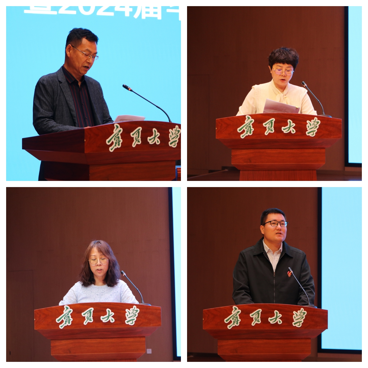 校党委书记李星代表学校党委向全校在2023年就业工作中付出辛勤努力的教职工表示感谢。他指出,毕业生就业工作事关高质量发展、民生福祉和社会稳定,做好高校毕业生就业工作,是党中央、自治区党委政府交给我们的政治任务,是人民群众对我们的殷切期盼,使命光荣,责任重大。2024年的就业形势依然严峻、工作任务依然艰巨,全校上下要提高政治站位,保持清醒头脑,坚决贯彻党中央决策部署,认真落实自治区党委政府工作要求,全力以赴稳就业、促就业。