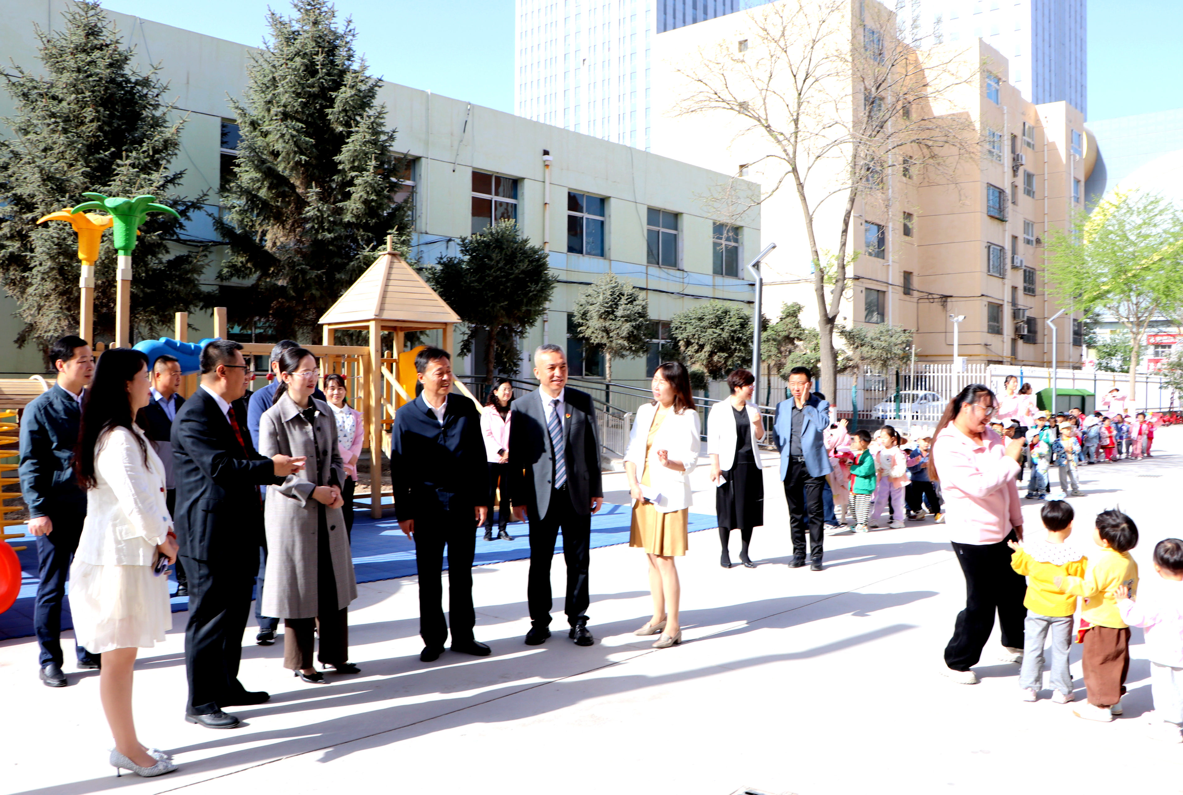 甘雅芬一行在校党委常委、副校长刘炎胜的陪同下分别前往beat365官网怀远校区、贺兰山校区调研beat365唯一官方网站幼儿园、勤学书院建设发展情况,在德勤楼天台鸟瞰校园全景,了解beat365唯一官方网站发展规划情况。