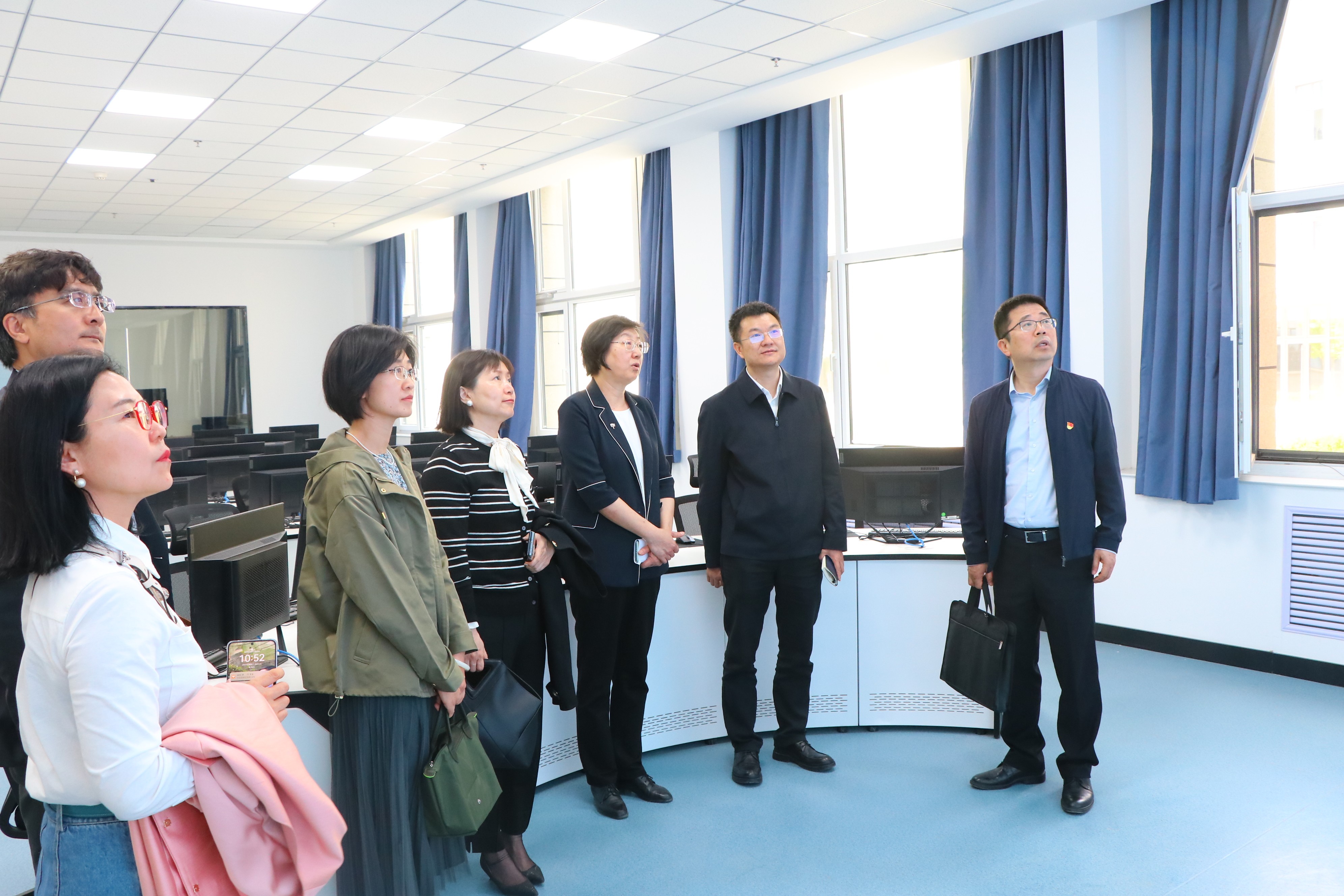 座谈会前,曾庆锴一行在韩惠丽的陪同下参观了新闻传播学院媒介与文化创意实验室、虚拟化多媒体机房、“六特”产业直播基地。