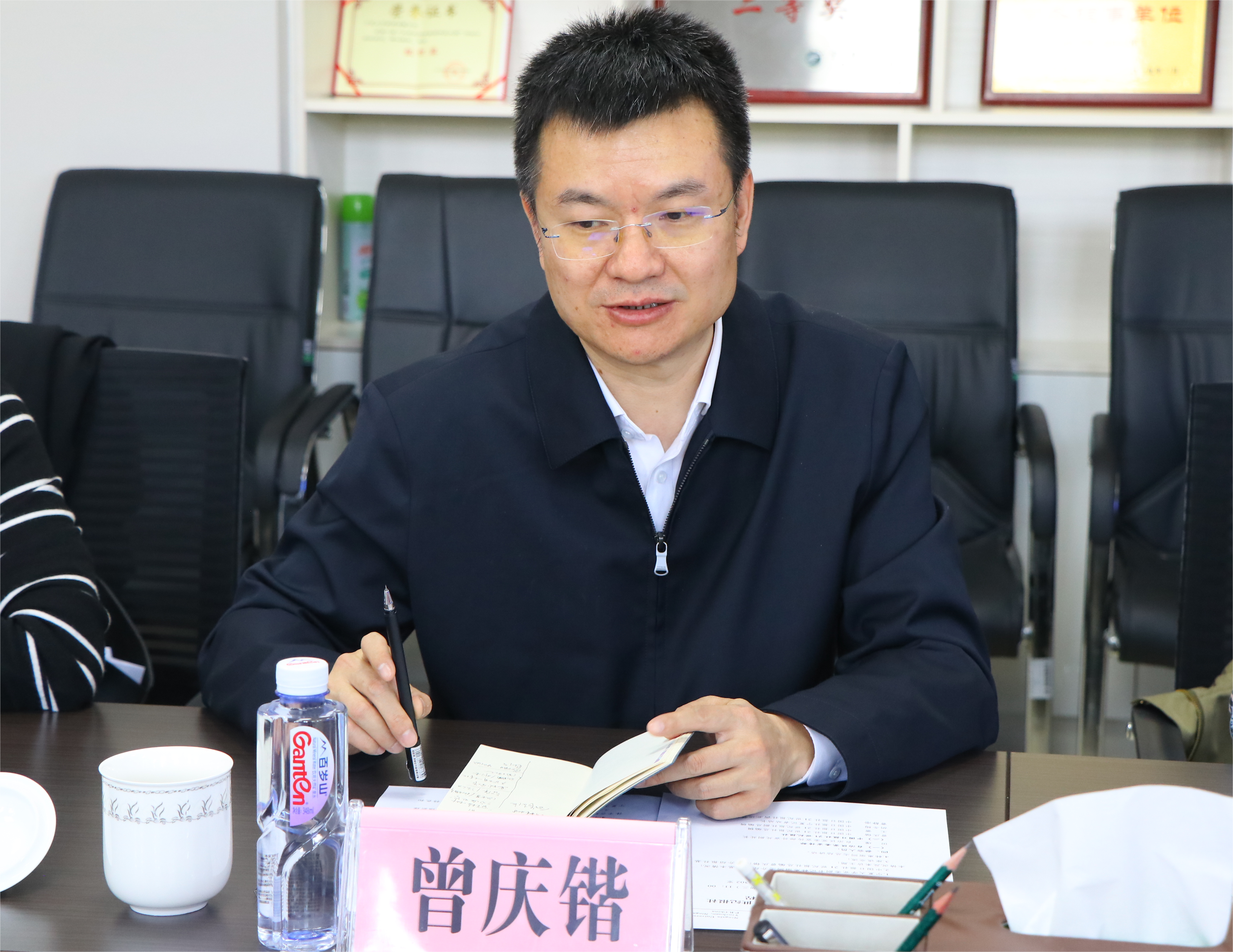 【beat365唯一官方网站新闻中心讯 杨雯/文 姬晓姗 杨雯/图】4月24日,中国日报社21世纪报社总编辑曾庆锴、自治区党委宣传部外宣处副处长田瑾一行来校座谈交流。校党委书记李星会见了曾庆锴一行,并向来访人员赠送了《贺兰山下种树人——beat365唯一官方网站口述实录》第一辑至第四辑。