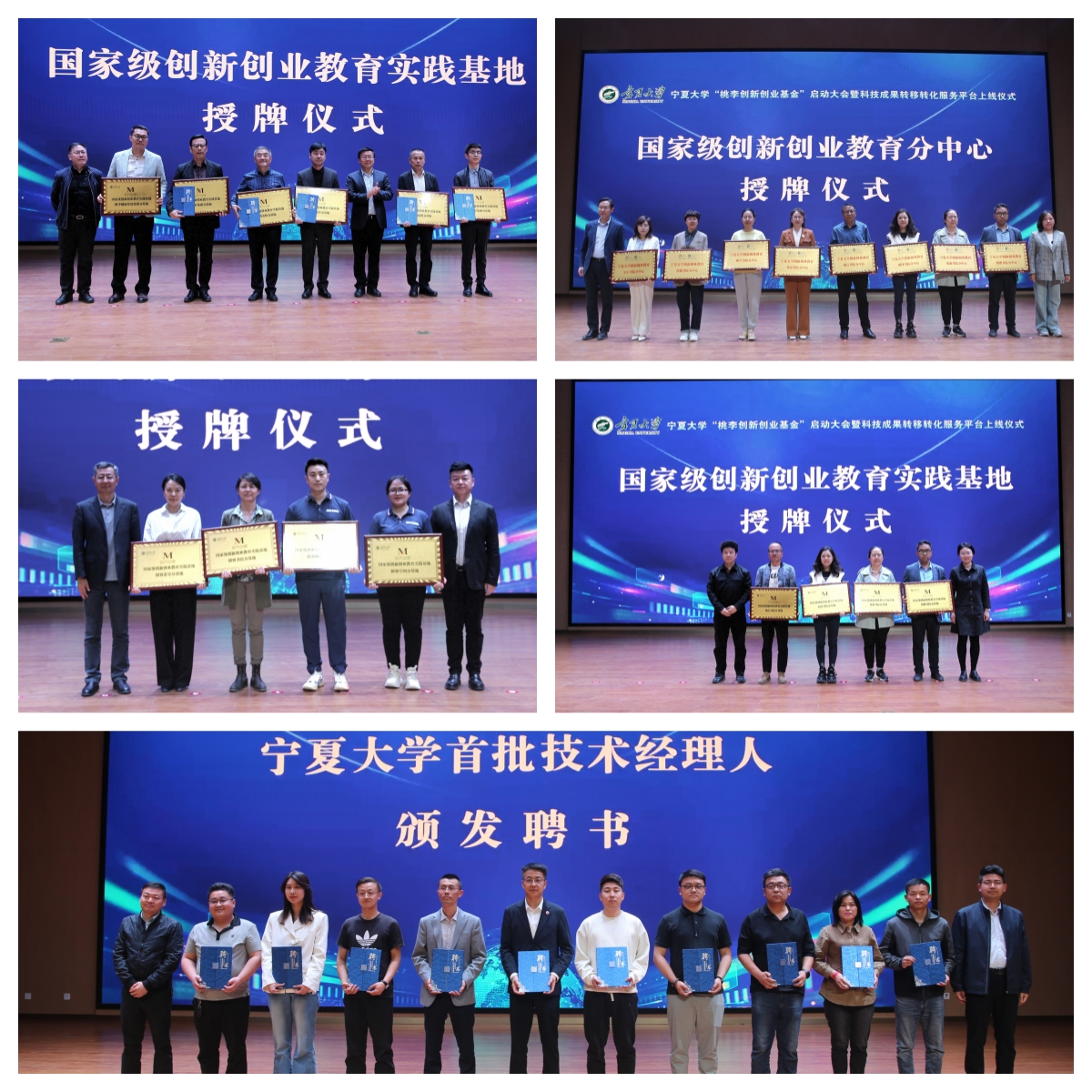 与会领导为国家级创新创业教育实践基地企业基地,国家级创新创业教育分中心,国家级创新创业教育实践基地校级、书院级分基地负责人授牌,并为国家大学科技园首批技术经理人代表颁发聘书。