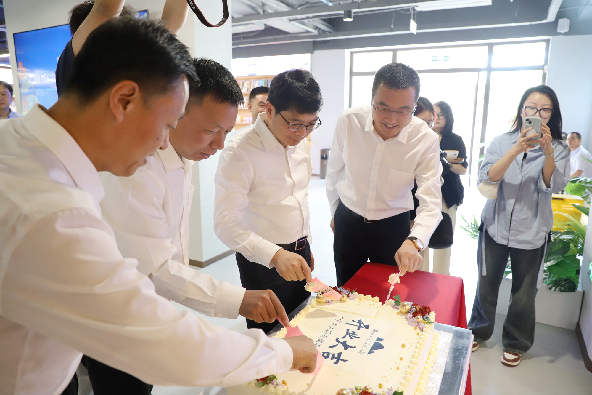 活动现场,与会领导、嘉宾一起切分蛋糕为蘭山文化空间的启用表示祝贺。
