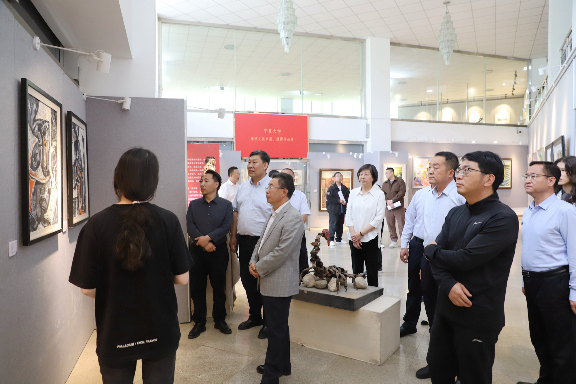 校党委副书记韩惠丽在致辞中代表学校党委对书画摄影展的开幕表示热烈祝贺。她指出,廉洁是中华民族精神文明建设的重要组成部分,不仅体现在政治生活中,更渗透于文化艺术的创作里。此次展出的师生作品,以书画为媒,以笔墨传情,展现了廉洁文化的美学价值和时代精神,透露出廉洁并非遥不可及的理念,而是融入日常生活的实践。她希望师生携起手来,让廉洁的种子播撒在心田,在日常言行中生根发芽,共同培育一个更加清正、和谐的环境。