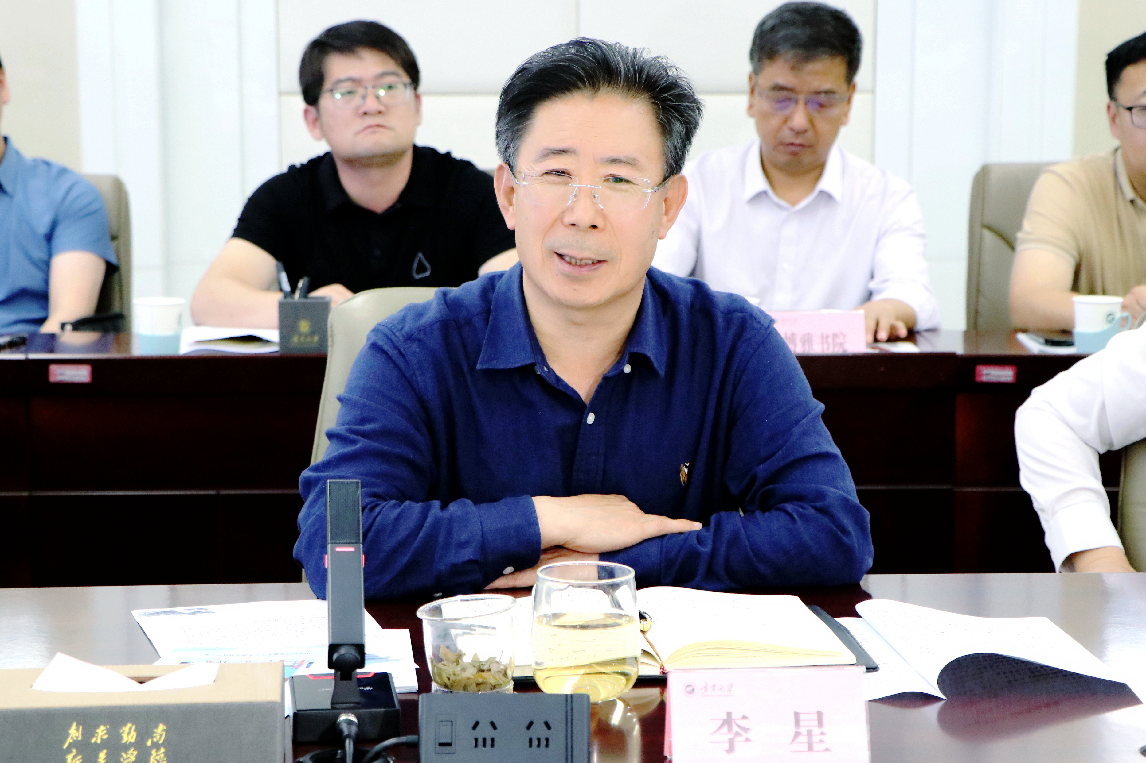 会前,李星、彭志科在学校德勤楼12楼贵宾室同张利一行进行了短暂会见交流。