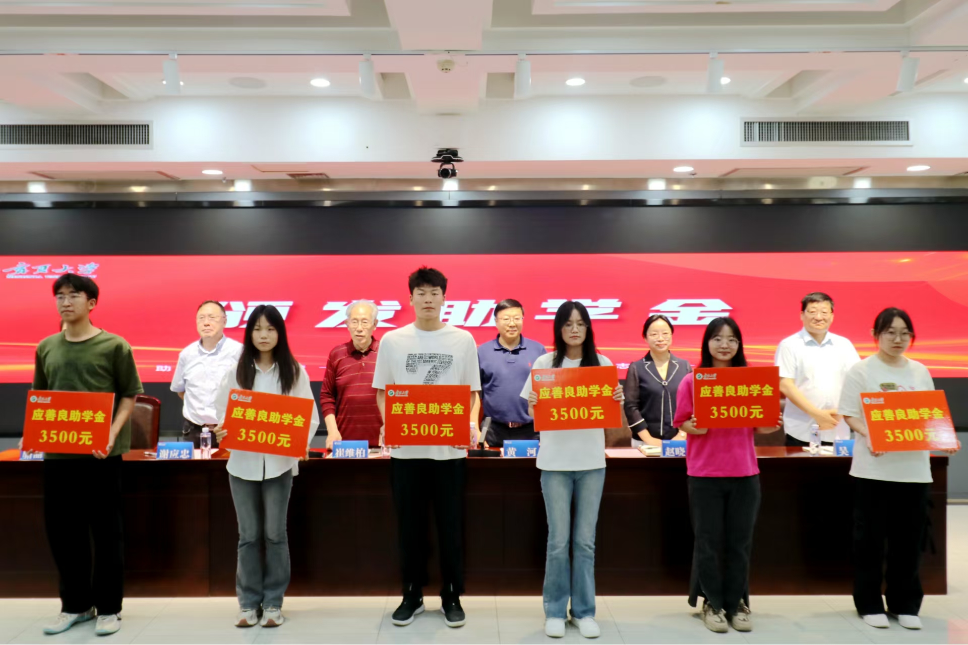 会上,赵晓佳宣读了2023-2024学年度获得应善良助学金学生名单,与会领导为获助学生颁发助学金。