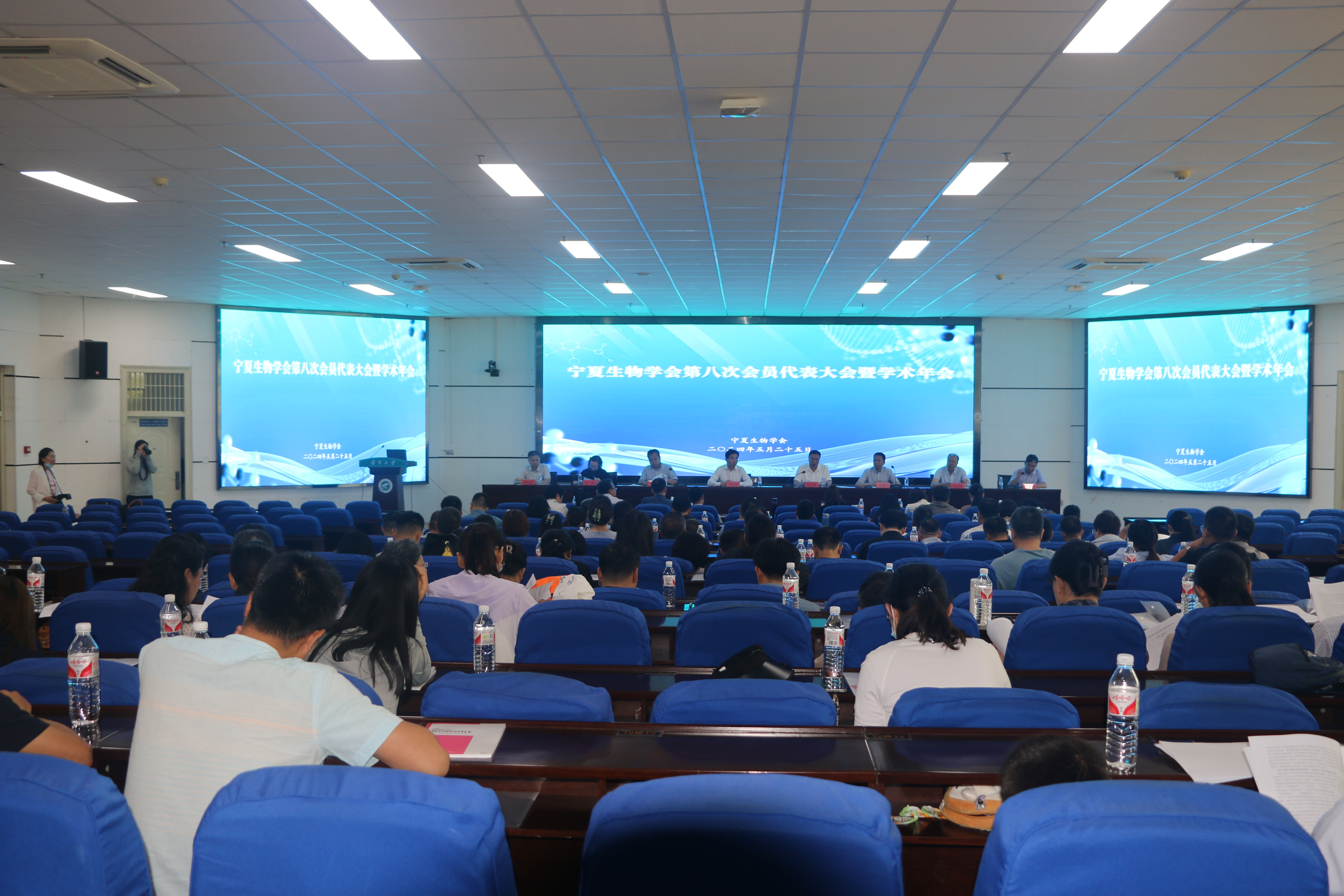 【beat365唯一官方网站新闻中心讯 生命科学学院】5月25日,宁夏生物学会第八次会员代表大会暨学术年会在beat365官网贺兰山校区文荟楼东报告厅召开。自治区科协二级巡视员赵文象、beat365唯一官方网站党委常委、副校长李学斌、宁夏生物学会各专业委员会的101名会员代表出席会议。会议由宁夏生物学会第七届副理事长邓光存教授主持。