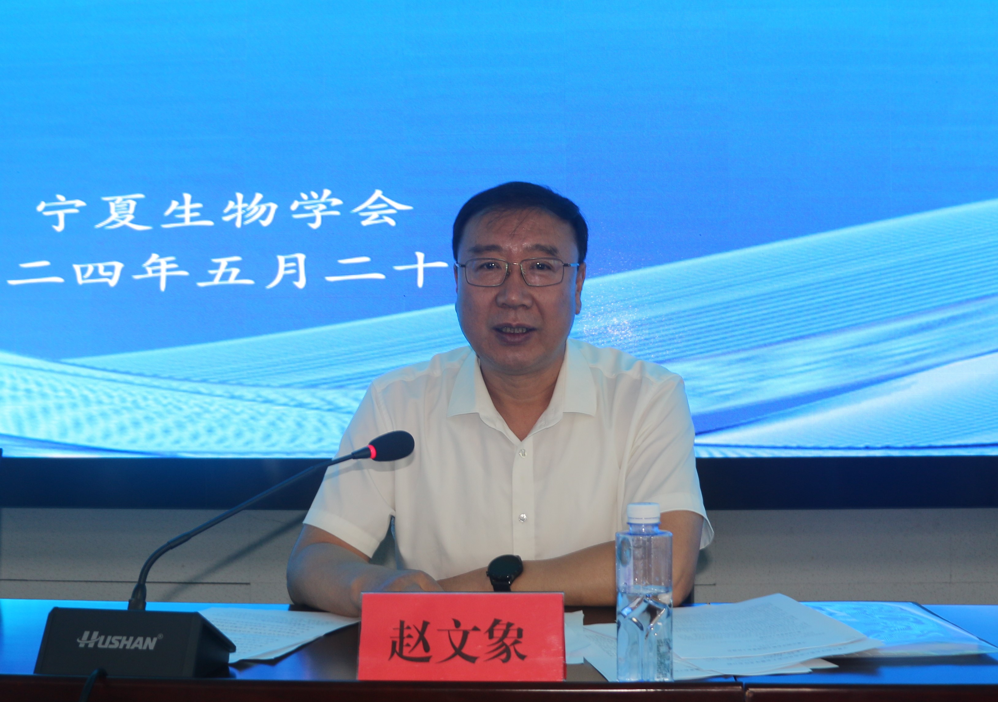 会议在庄严的《国歌》声中拉开帷幕。赵文象代表自治区科协致辞,他希望宁夏生物学会以此次会员代表大会为契机,充分发挥科技创新的支撑引领作用,积极推动新质生产力发展,主动服务宁夏经济社会发展大局,聚焦主责主业、强化担当实干,谋划创新发展新思路、新举措,努力开创学会改革和创新发展工作新局面。