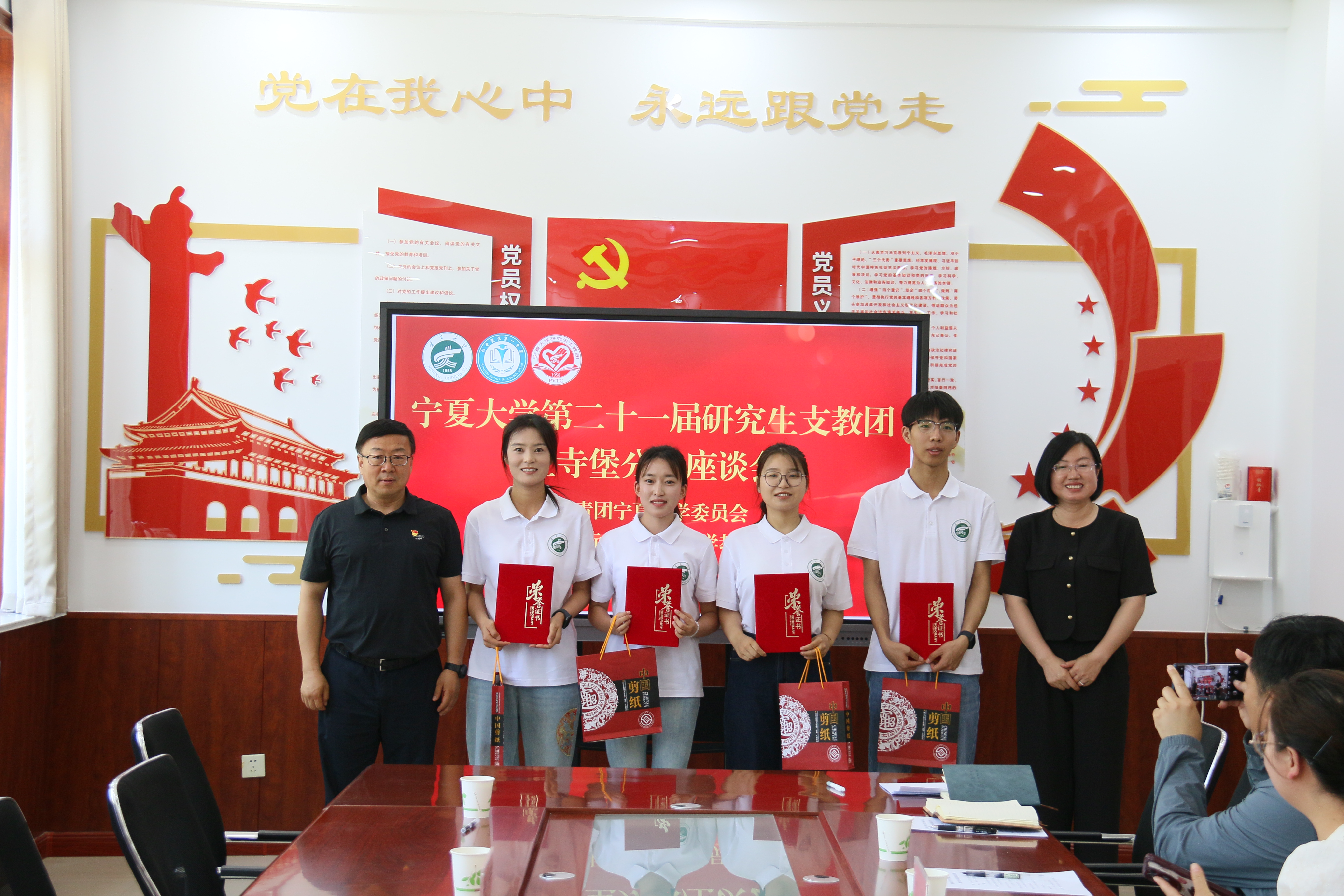 座谈会后,黄河一行实地查看了支教队员们的教学和生活环境,并受邀为红寺堡分队成员颁发证书。
