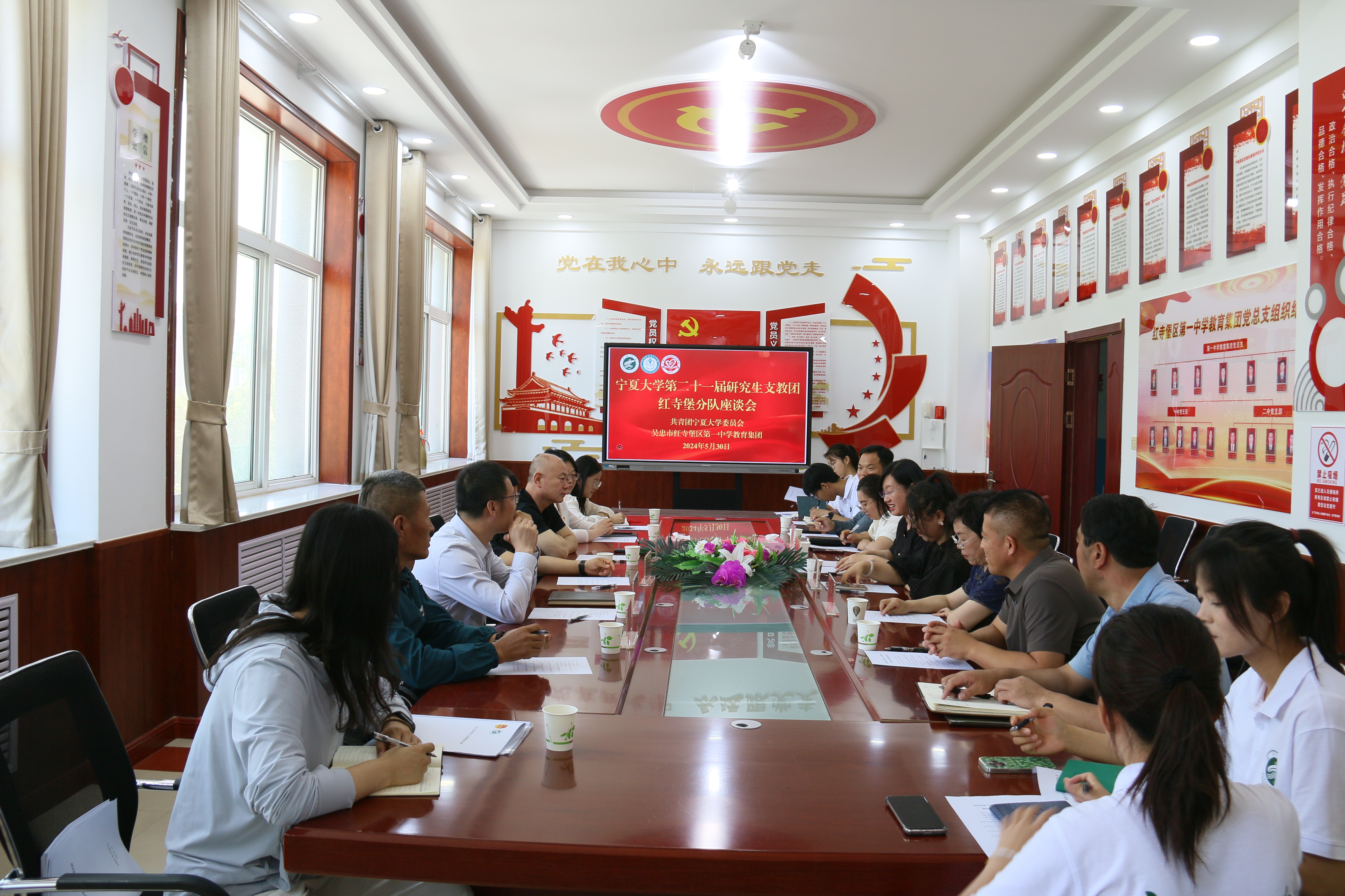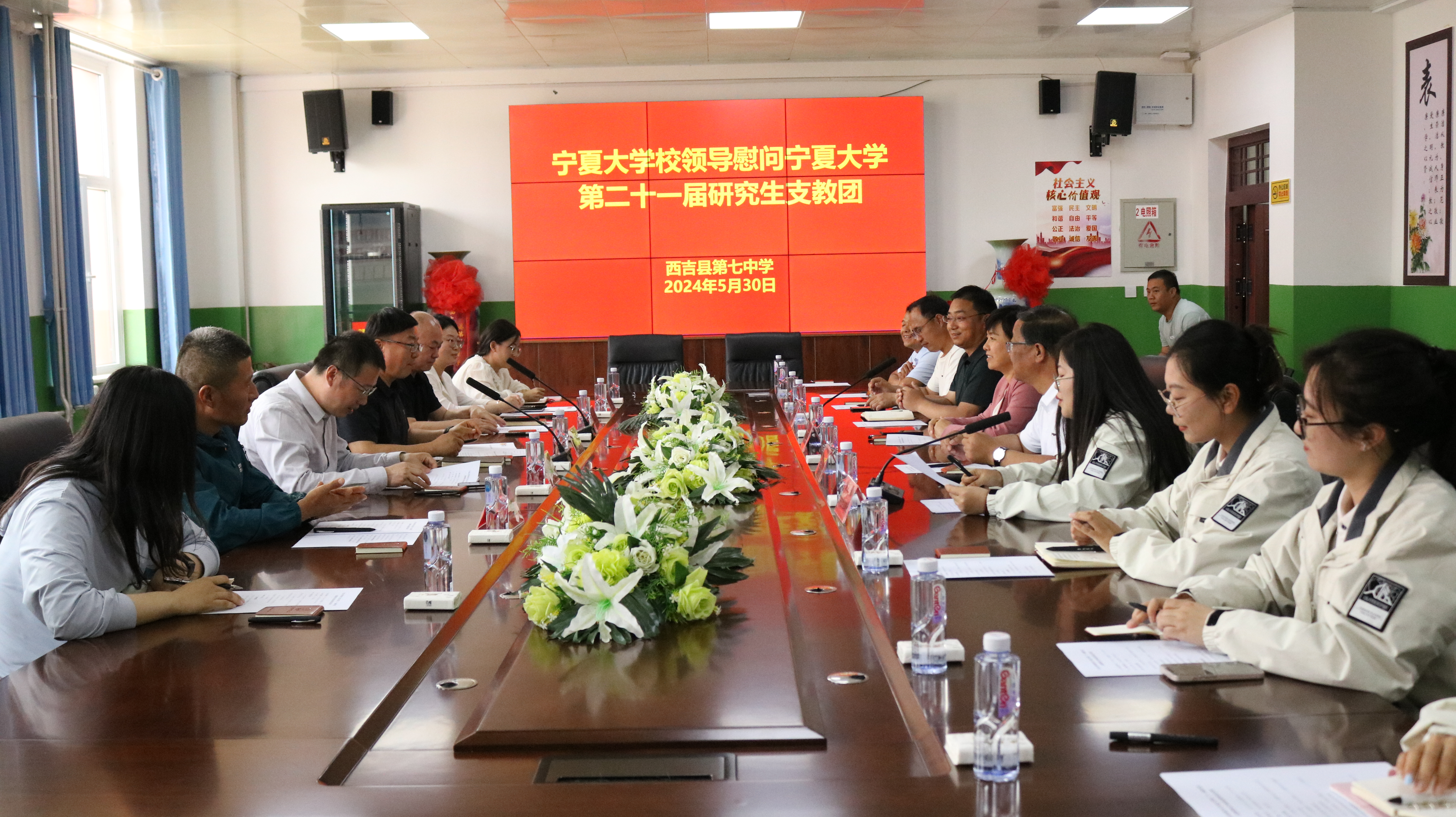 座谈会上,红寺堡第一中学、西吉七中负责人分别介绍了学校基本情况和研究生支教团服务情况,对研究生支教团的优良作风和支教期间表现予以高度肯定,并对黄河一行表示热烈欢迎。研究生支教团团长马千慧、西吉分队队长虎亚茹分别代表研究生支教团红寺堡分队和西吉分队汇报了支教期间工作、学习及生活情况。