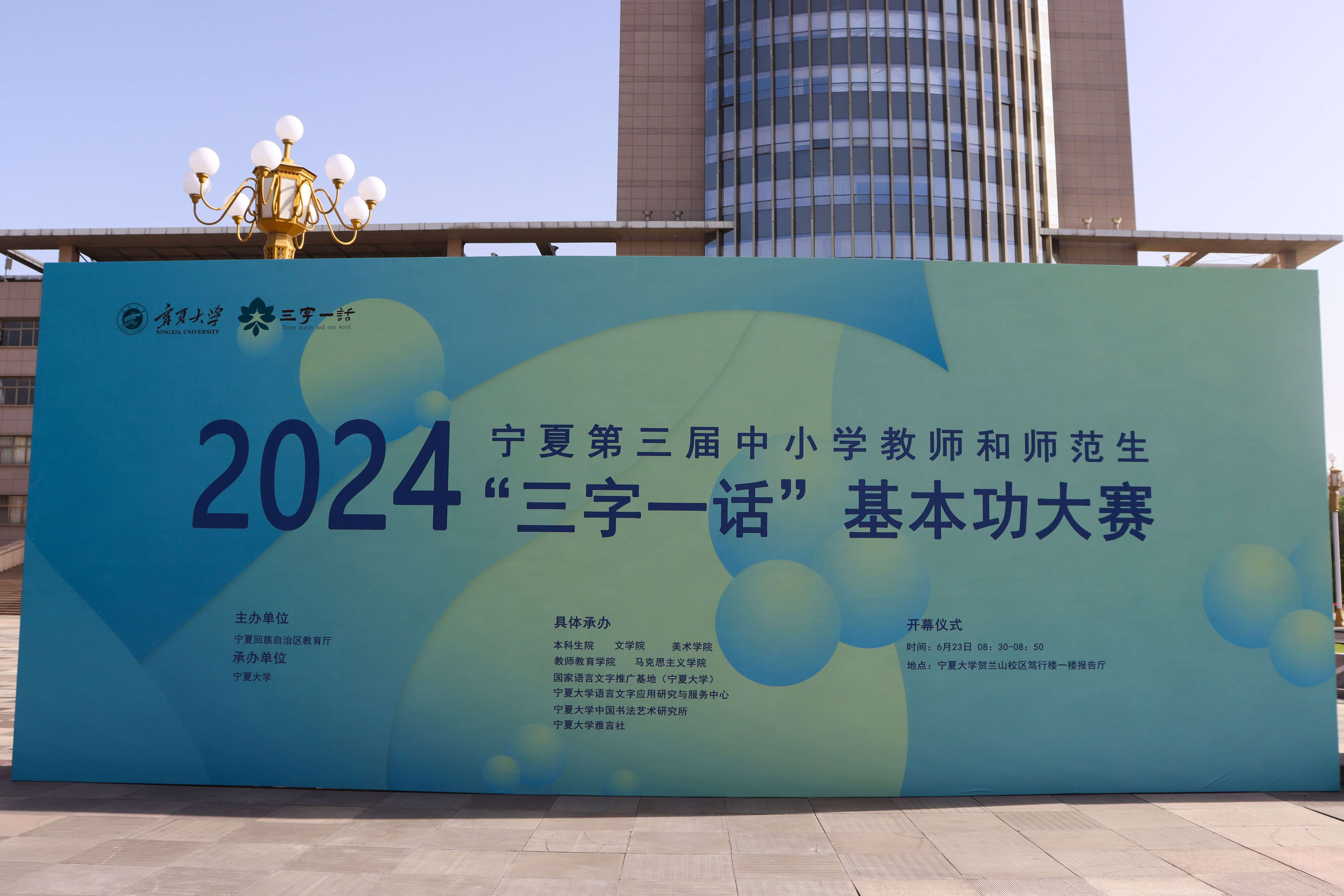 【beat365唯一官方网站新闻中心讯 本科生院/文 学生记者 董昕玥、侯文贤/图】6月22日至23日,宁夏第三届中小学教师和师范生“三字一话”基本功大赛决赛在beat365唯一官方网站举办。本次比赛由自治区教育厅主办,国家语言文字推广基地(beat365唯一官方网站)、beat365唯一官方网站语言文字应用研究与服务中心、beat365唯一官方网站中国书法艺术研究所、beat365唯一官方网站雅言社等机构协办。
