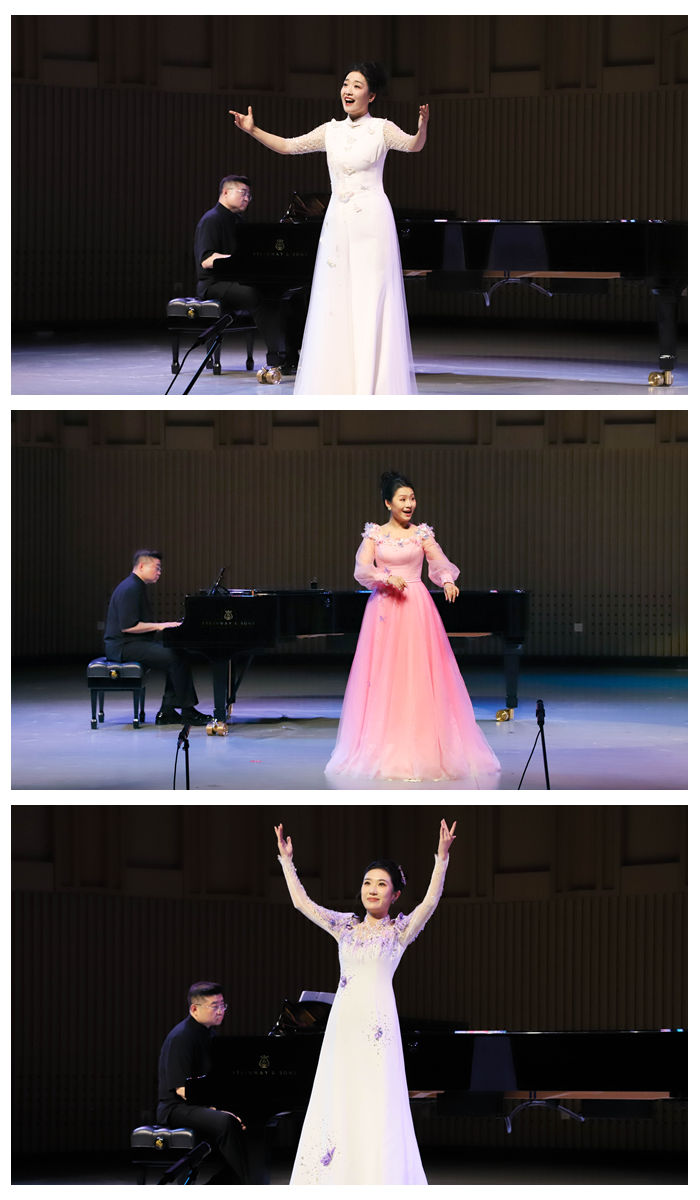 演唱会以十一位女生带来的苗族多声部民歌《芦笙场上》拉开序幕。《新编挂红灯》将民族声乐与京剧音乐巧妙结合,碰撞出特有的色彩;根据唐代诗词谱曲的作品《枫桥夜泊》彰显着含蓄的中国美学精神;蒙古族、彝族、藏族同学带来的家乡民歌让现场听众领略到少数民族民歌的非凡感染力;花儿《雪白的鸽子》唱出穿越时空的淳朴感,让人们直观体验到原生态的诗意浪漫;董华老师倾情演唱的新作品《一念如初》和名曲《春风圆舞曲》,将音乐会推向了高潮。