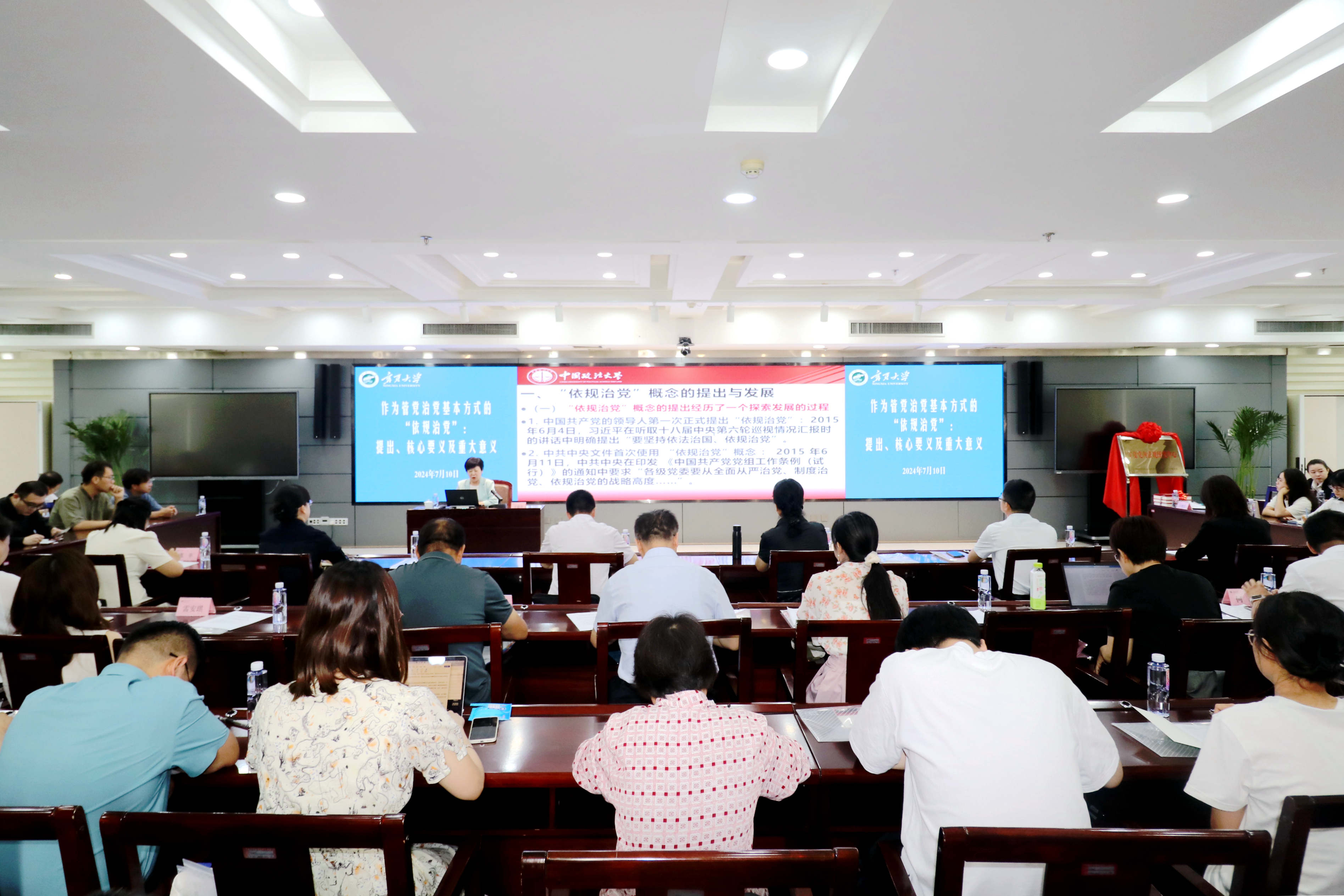 成立仪式后,王建芹教授受邀围绕“依规治党”概念的提出与发展,依规治党与制度治党、以德治党、依法治党的关系,依规治党的核心要义及重大意义,坚持把依规治党当做管党治党的基本方式等四个方面,为与会人员作了专题辅导报告。