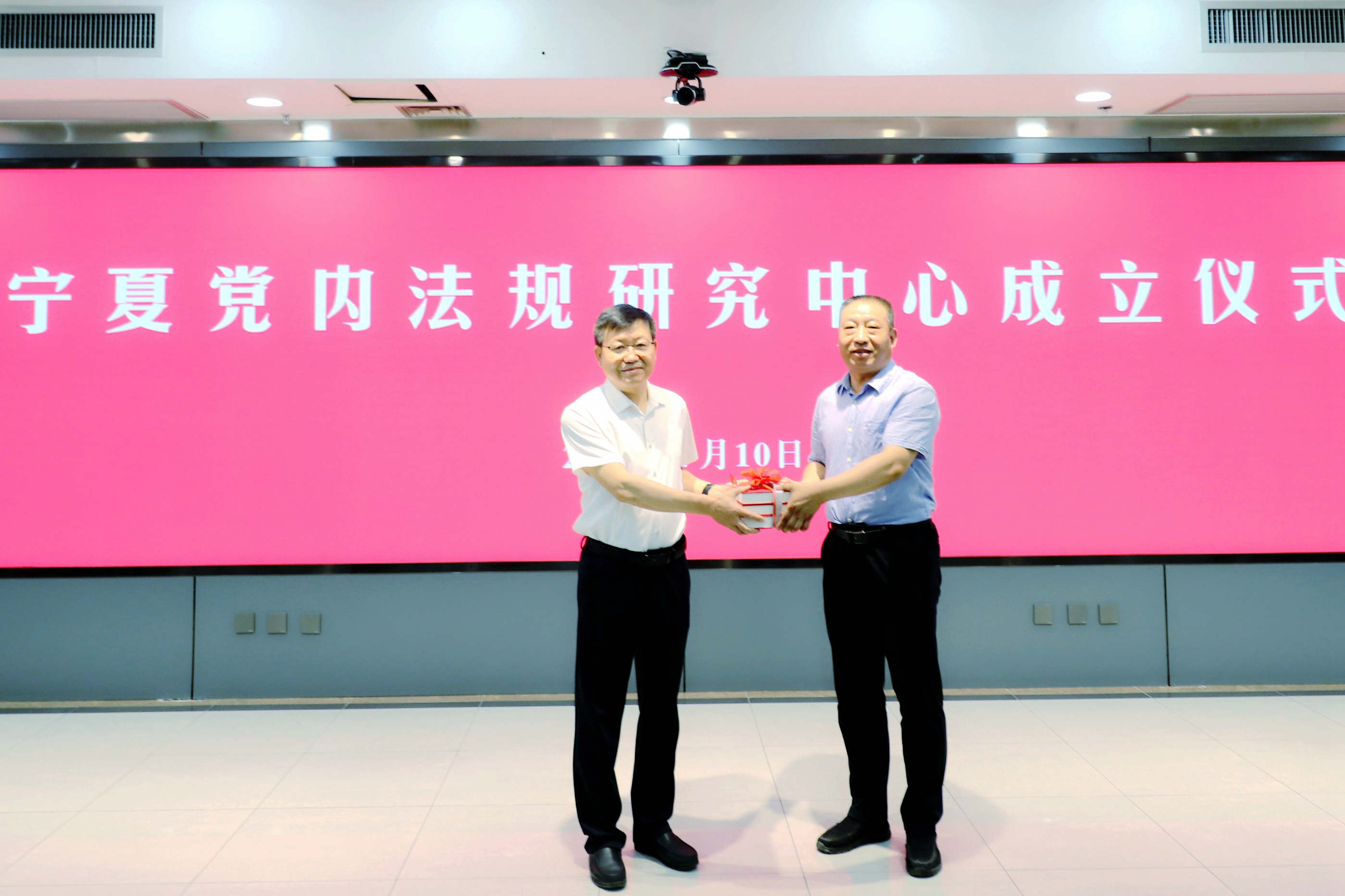 杨瑞军代表自治区党委办公厅向宁夏党内法规研究中心赠阅资料。
