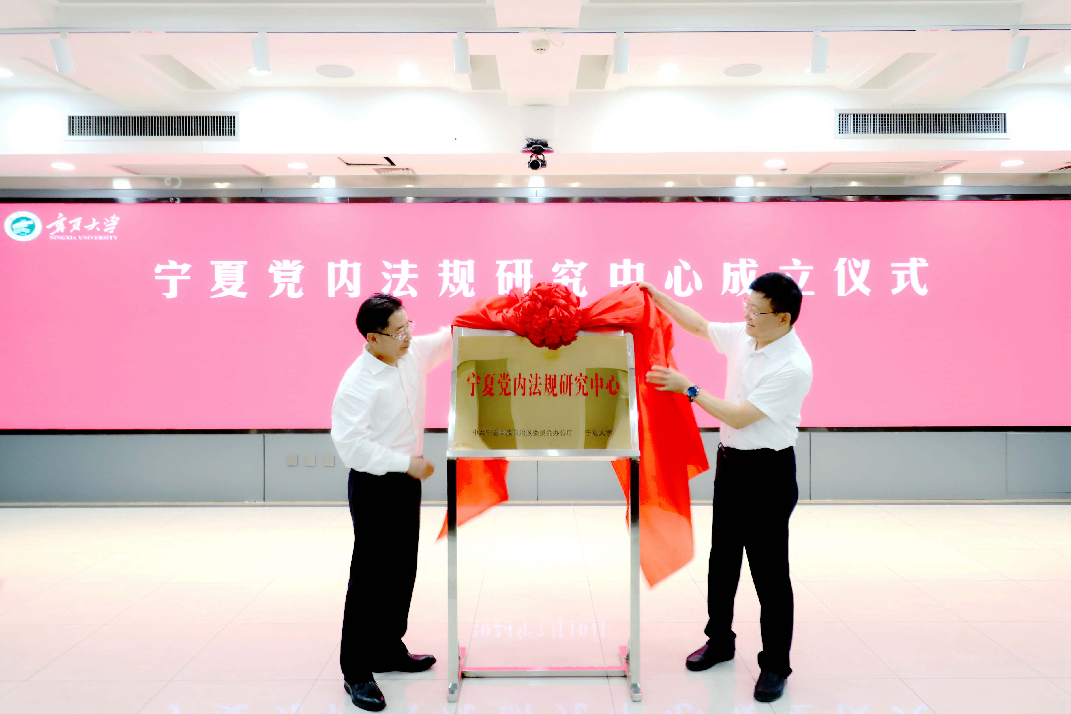 成立仪式上,李星与杨瑞军共同为宁夏党内法规研究中心揭牌。