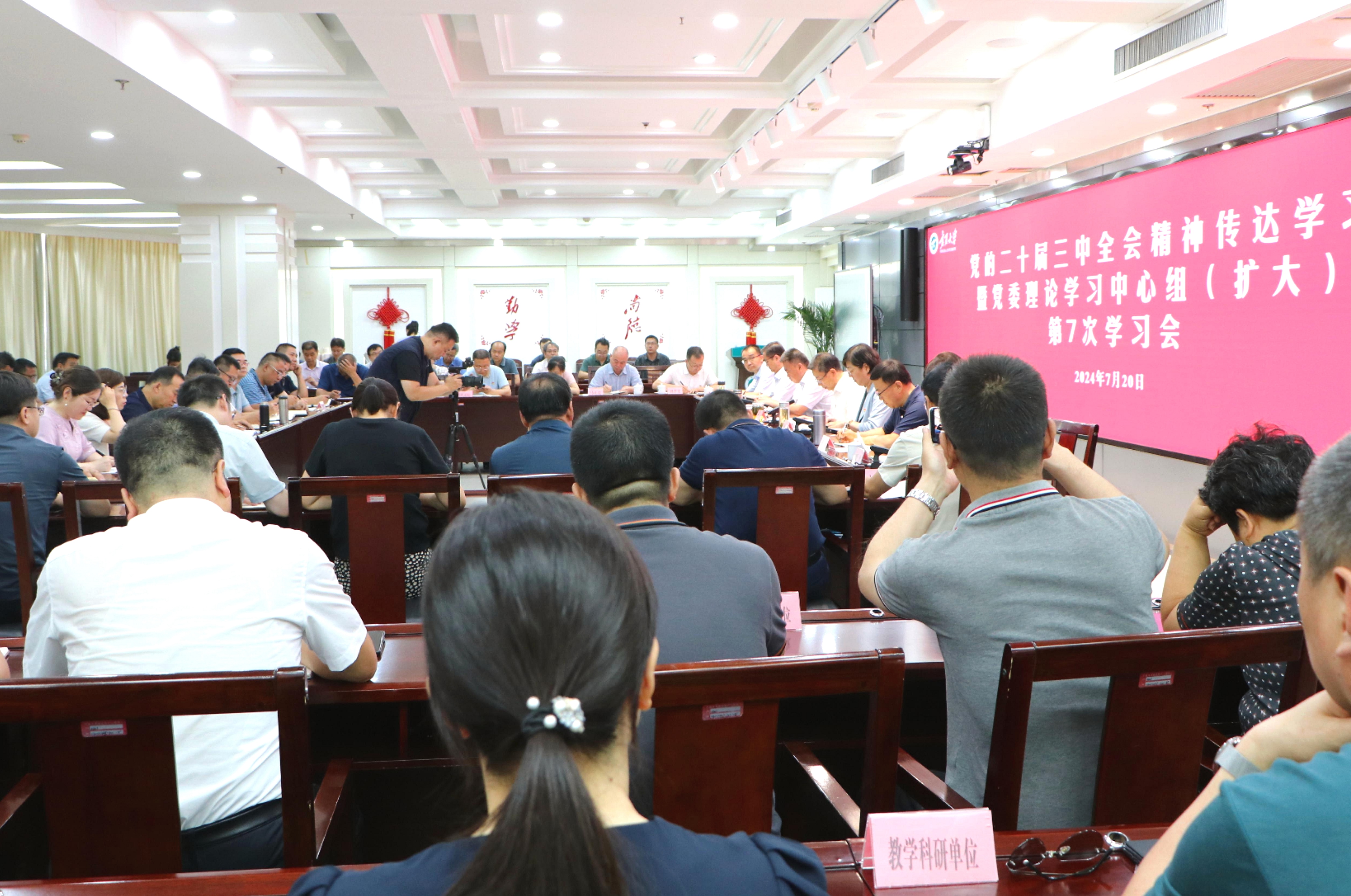 【beat365唯一官方网站新闻中心讯 李瑾/文、图】7月20日,beat365官网召开党的二十届三中全会精神传达学习暨党委理论学习中心组(扩大)第7次学习会,专题传达学习党的二十届三中全会精神,校党委书记李星主持会议。