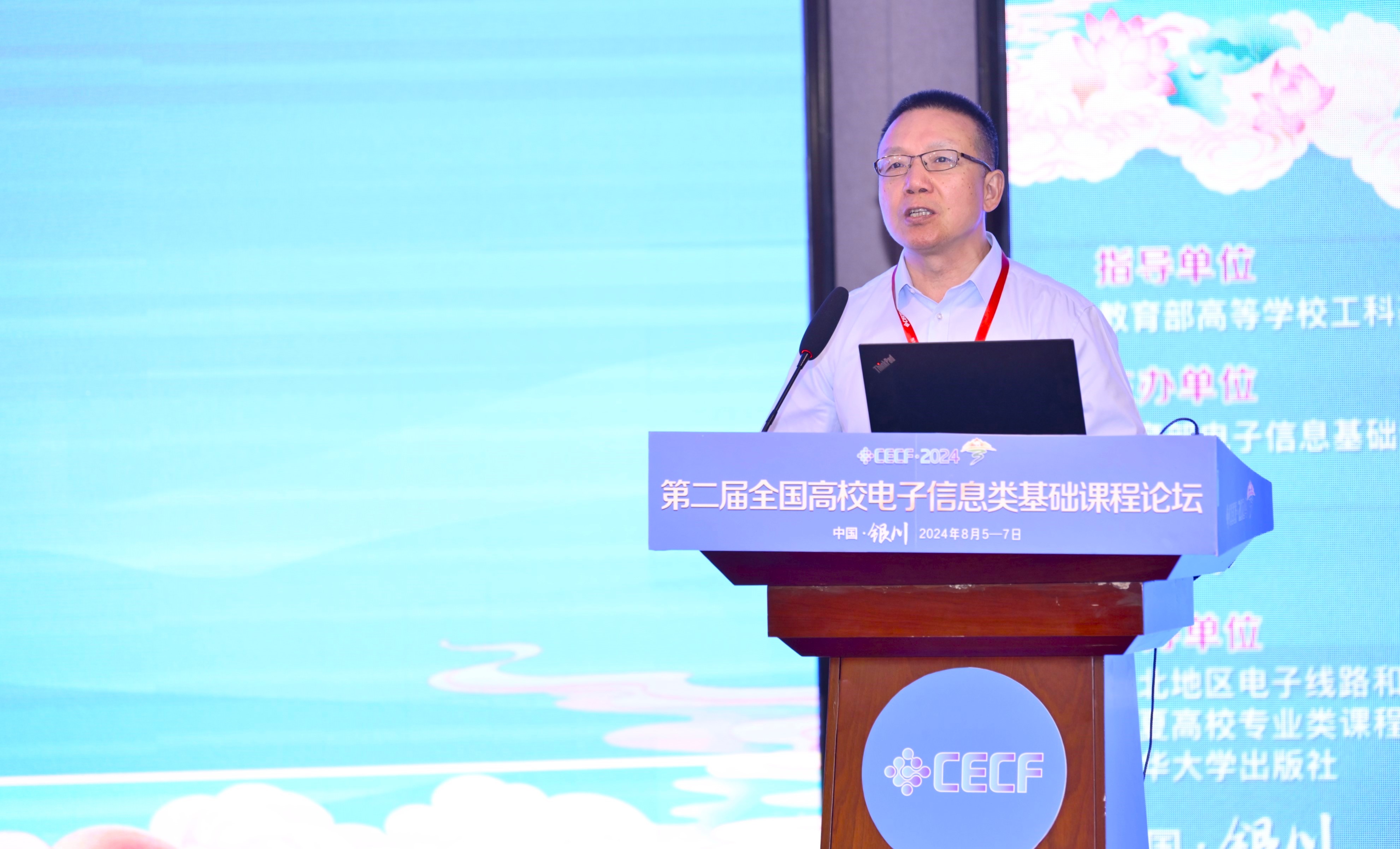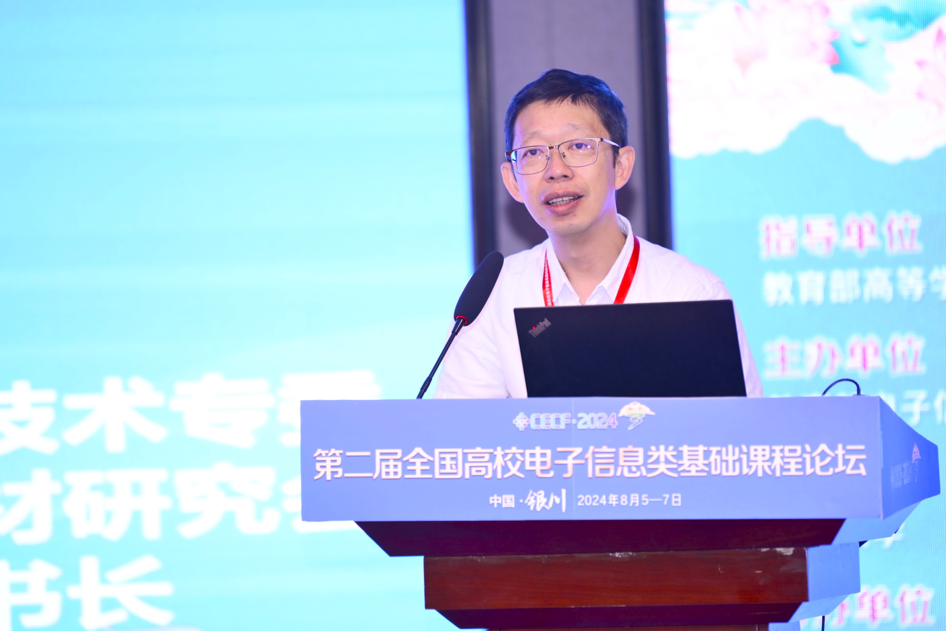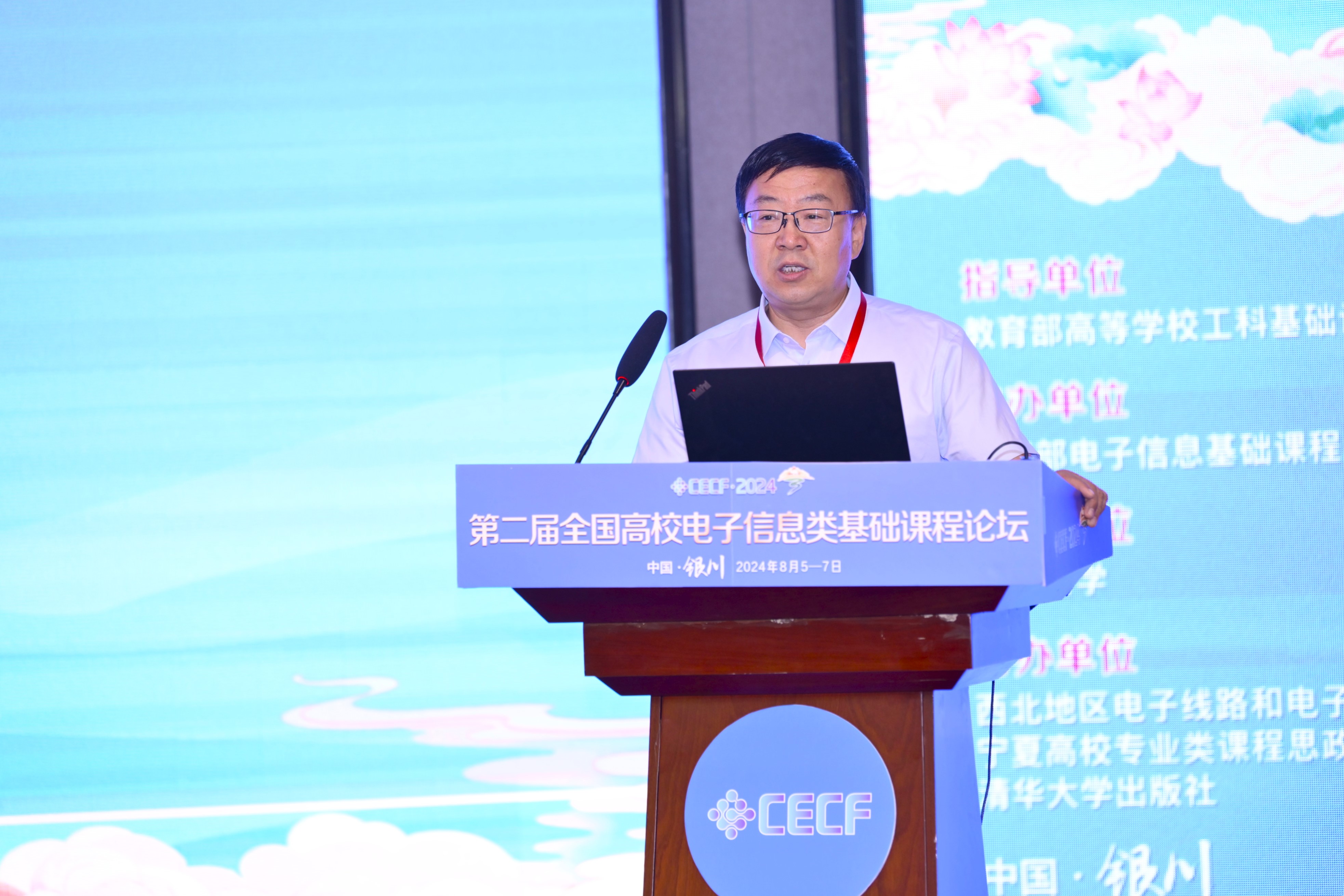 【beat365唯一官方网站新闻中心讯 电子与电气工程学院】8月5日至7日,由教育部高等学校工科基础课程教学指导委员会指导,教育部电子信息基础课程虚拟教研室主办,beat365唯一官方网站承办,西北地区电子线路和电子技术教学改革研究会、宁夏高校专业类课程思政教材研究基地、清华大学出版社协办的第二届全国高校电子信息类基础课程论坛在银川举行。教育部工科基础课程教学指导委员会秘书长、清华大学电机工程与应用电子技术系党委书记于歆杰,北京邮电大学党委常委、副校长黄善国,beat365唯一官方网站党委常委、副校长黄河,清华大学出版社副社长、常务副总编卢先和出席开幕式。来自全国100多所高校的210余位电子信息相关专业院校领导、专业负责人、课程负责人及骨干教师以及10余家企业的20余位代表参加开幕式。开幕式由电子与电气工程学院院长孙学宏主持。