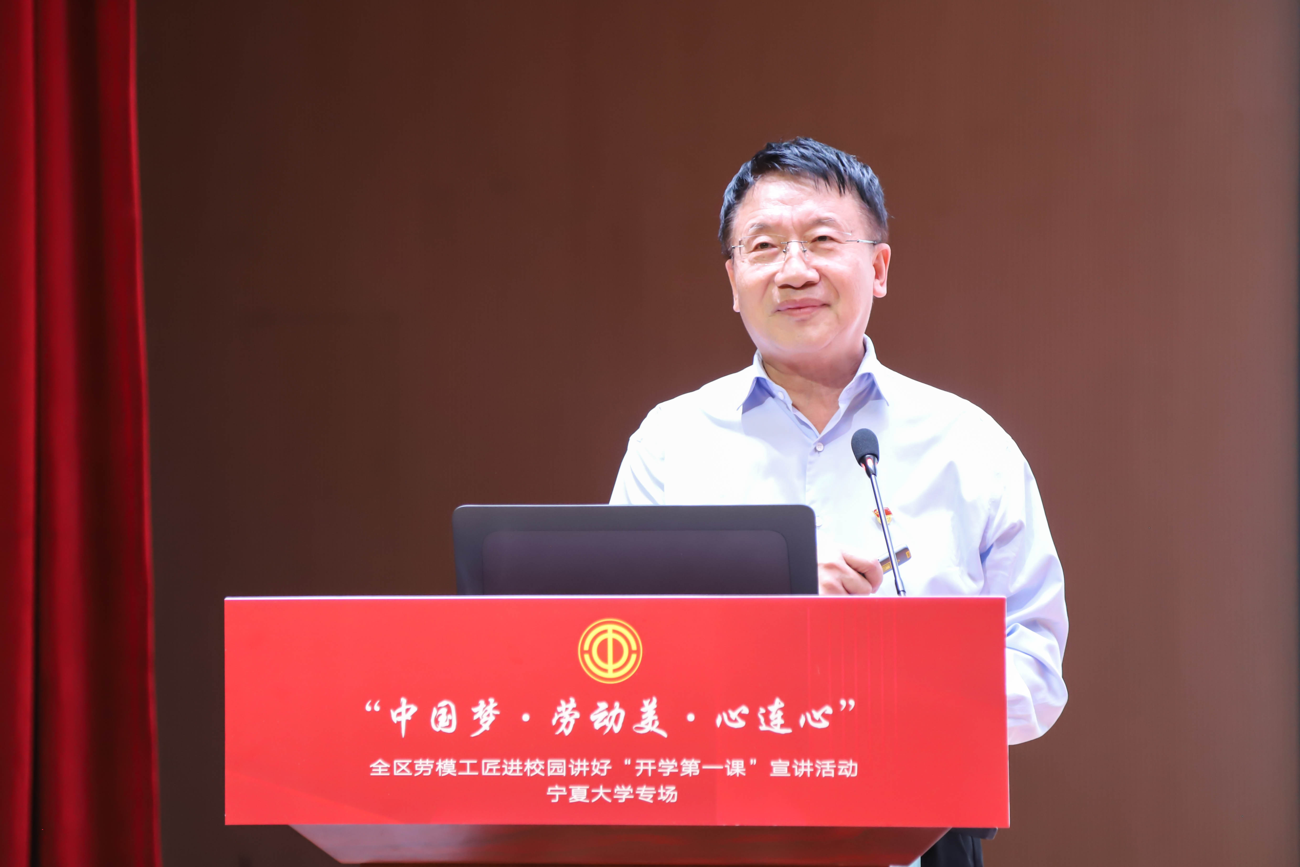 【beat365唯一官方网站新闻中心讯 杨雯/文 学生记者 文轩轩/图】为深入学习贯彻党的二十届三中全会精神,大力弘扬劳模精神、劳动精神、工匠精神,讲好“山海情”“石榴籽”“母亲河”“草方格”“神宁炉”等各民族共同团结奋斗故事,在广大学生心中种下技能成才、技能报国的种子,着力营造中华民族一家亲、同心共筑中国梦的社会氛围,自治区总工会、教育厅近期联合开展6场劳模工匠进校园讲好“开学第一课”宣讲活动。9月11日,全区劳模工匠进校园讲好“开学第一课”宣讲活动beat365唯一官方网站专场在贺兰山校区笃行楼举行,活动采用线上直播形式。自治区总工会党组成员、副主席尤文涛,副校长赵晓佳等领导出席活动。