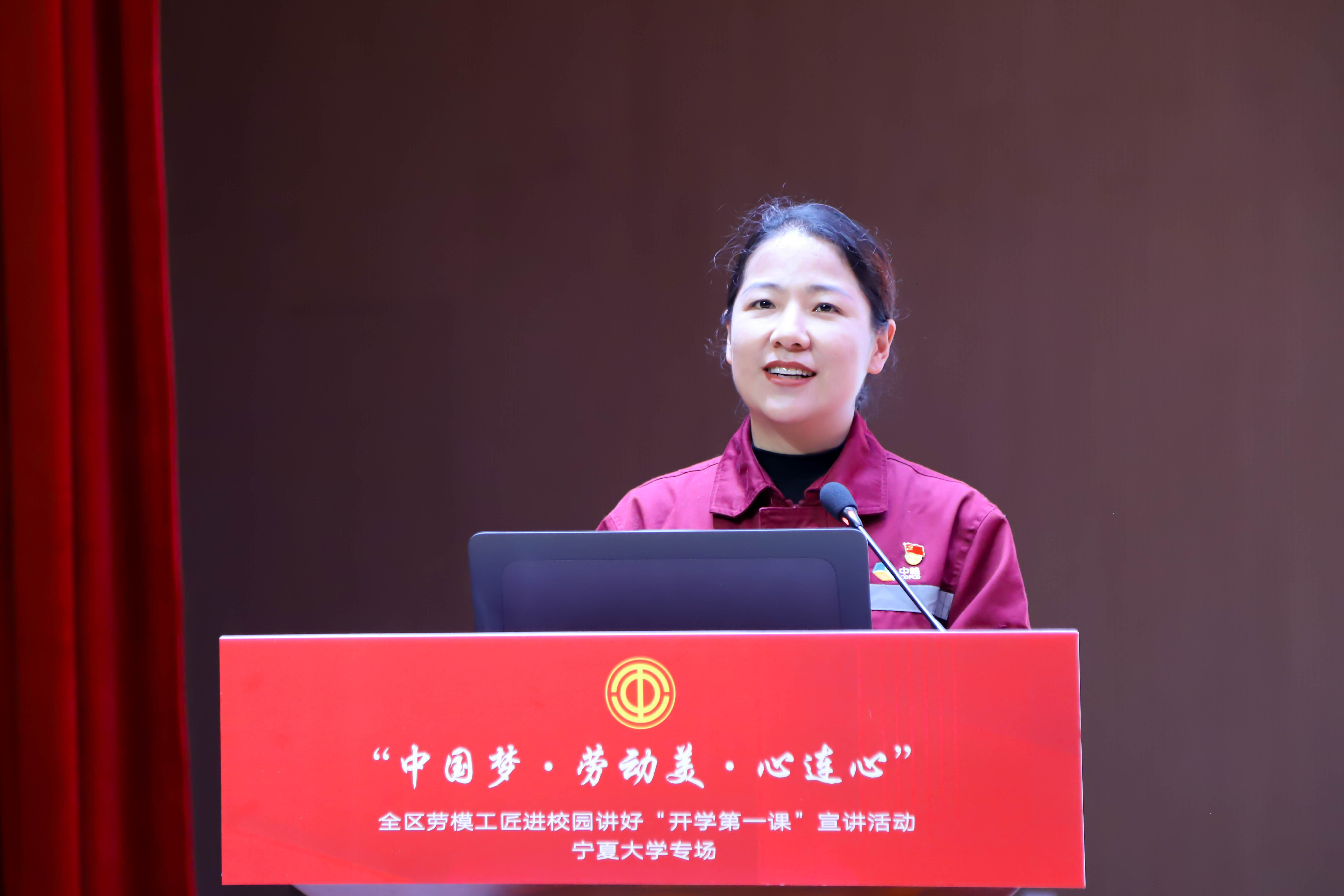 曹有龙以《集智攻关、团队协作的协同精神——宁夏枸杞科研团队助力枸杞产业高质量发展的生动实践》为题,介绍宁夏枸杞科研团队的发展历程、主要研究成果以及团队协作在科研攻关中的重要作用,分享了他带领团队不断精进、不断摸索、不断创新,建成世界唯一枸杞种质资源圃等成绩背后的故事。赵耐香以《牢记嘱托 勇担使命 奋力谱写中国式现代化宁夏篇章》为题,讲述了习近平总书记在宁夏视察期间前往长城花园社区考察时的嘱托,分享了她28岁扎根社区,解决居民群众老年人就餐难、孩子入托难、困难群体就业难问题等先进事迹。宋改玲以《奋斗是青春最美的底色》为题,向同学们讲述了自己“干一行爱一行,爱一行钻一行”的奋斗经历和执着探索,鼓励同学们要不断学习,成就更好的自己。
