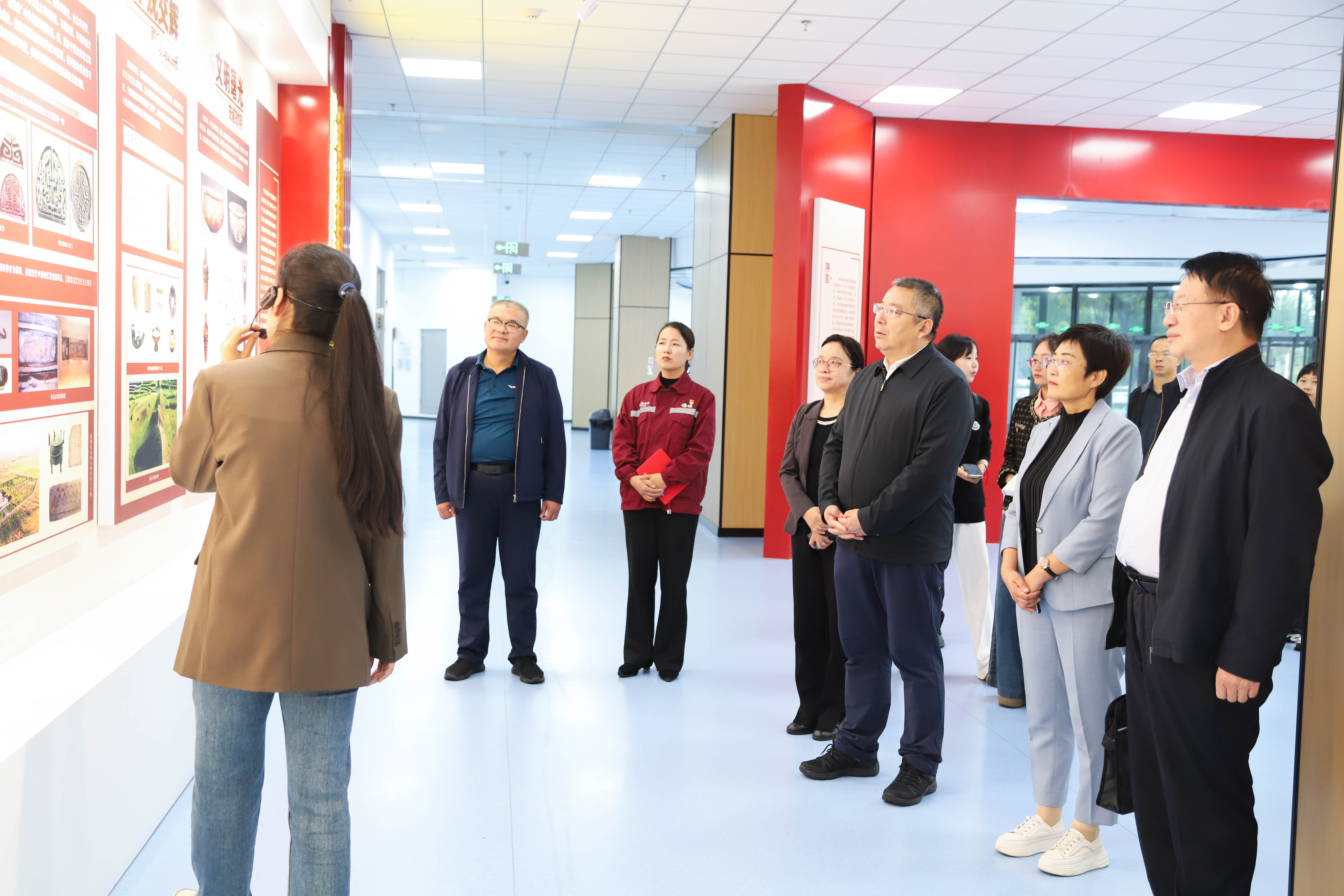 会前,赵晓佳陪同尤文涛和劳模代表一行参观了beat365官网“石榴花开润塞上——铸牢中华民族共同体意识的宁夏实践”教育展馆。