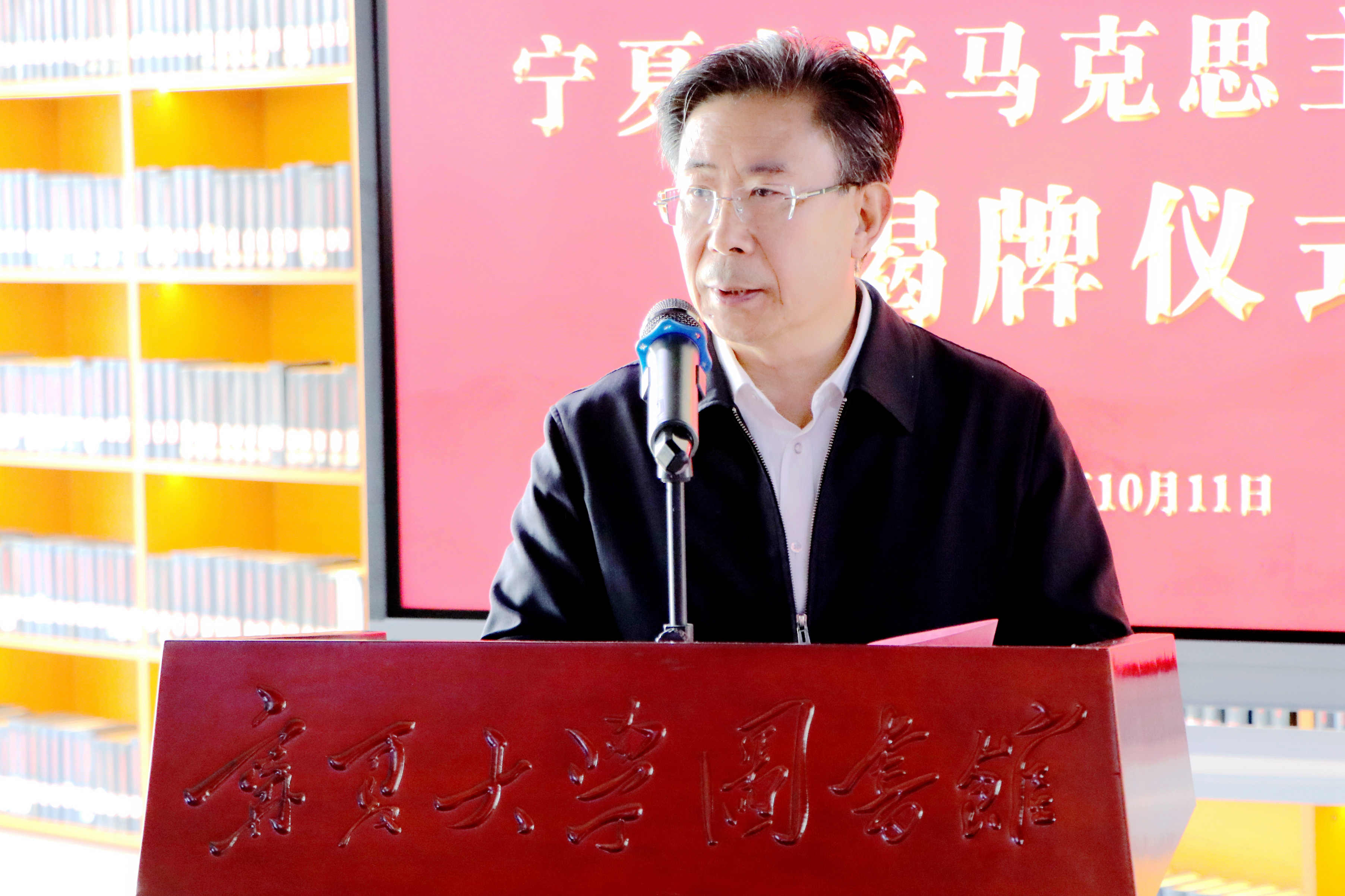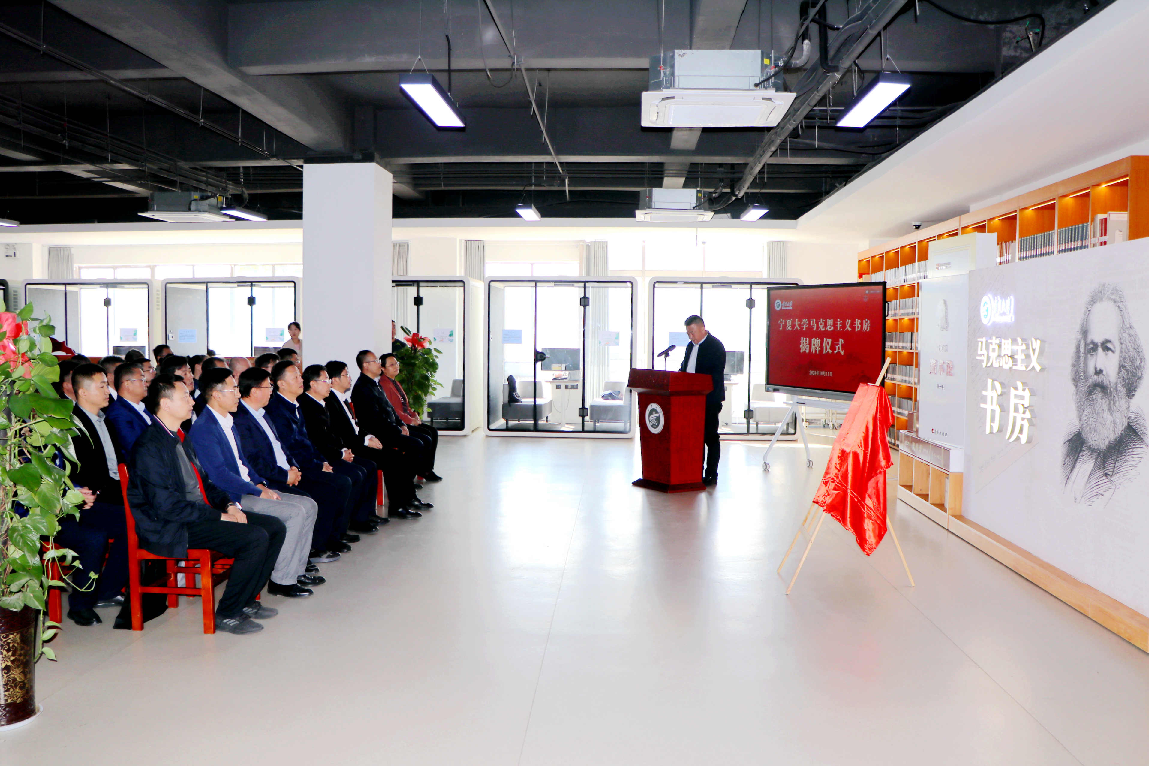 【beat365唯一官方网站新闻中心讯 冯禹君/文 张景/图】为深入贯彻落实习近平总书记关于加强马克思主义学院和思想政治理论课建设的重要指示批示精神,加快推进beat365官网全国重点马克思主义学院培育单位建设,打造培育时代新人的红色文化阵地,10月11日,beat365官网在怀远校区逸夫图书馆二楼举行“beat365唯一官方网站马克思主义书房”揭牌仪式。自治区教育工委副书记刘炎胜、自治区党委宣传部理论处处长周志宏、自治区教育厅学生处(教材处)四级调研员范昕,校党委书记李星,校党委副书记、校长彭志科,校党委常委、副校长黄河出席揭牌仪式。校党委副书记张桓主持仪式。