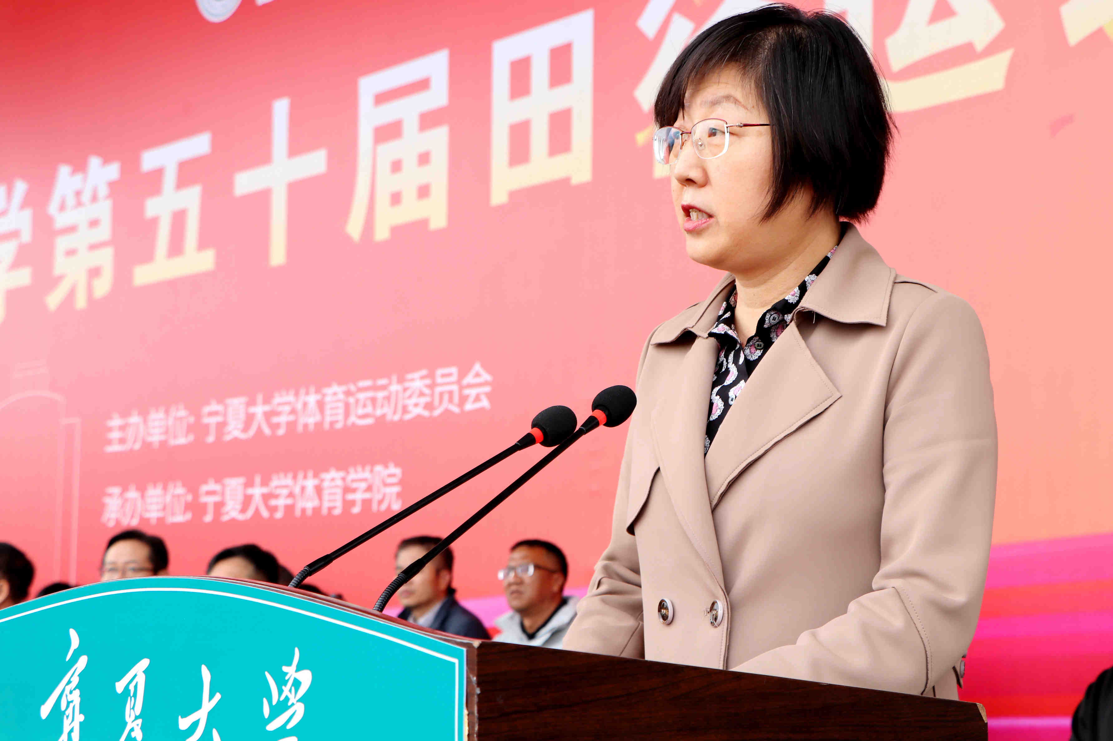 校党委副书记韩惠丽致开幕辞。她表示,本次田径运动会既为同学们提供展现青春活力的舞台,又以丰富多彩的赛事献礼新中国成立75周年。她希望同学们以高昂的斗志和顽强的精神,展示速度和力量的魅力,展示活力和自信的风采;全体裁判员和工作人员认真履行工作职责,展示公平和公正的魅力,展示专业和敬业的风采,全体师生以昂扬向上的精神风貌,拼搏进取的奋斗姿态,凝聚起推动学校高质量发展的强大合力。