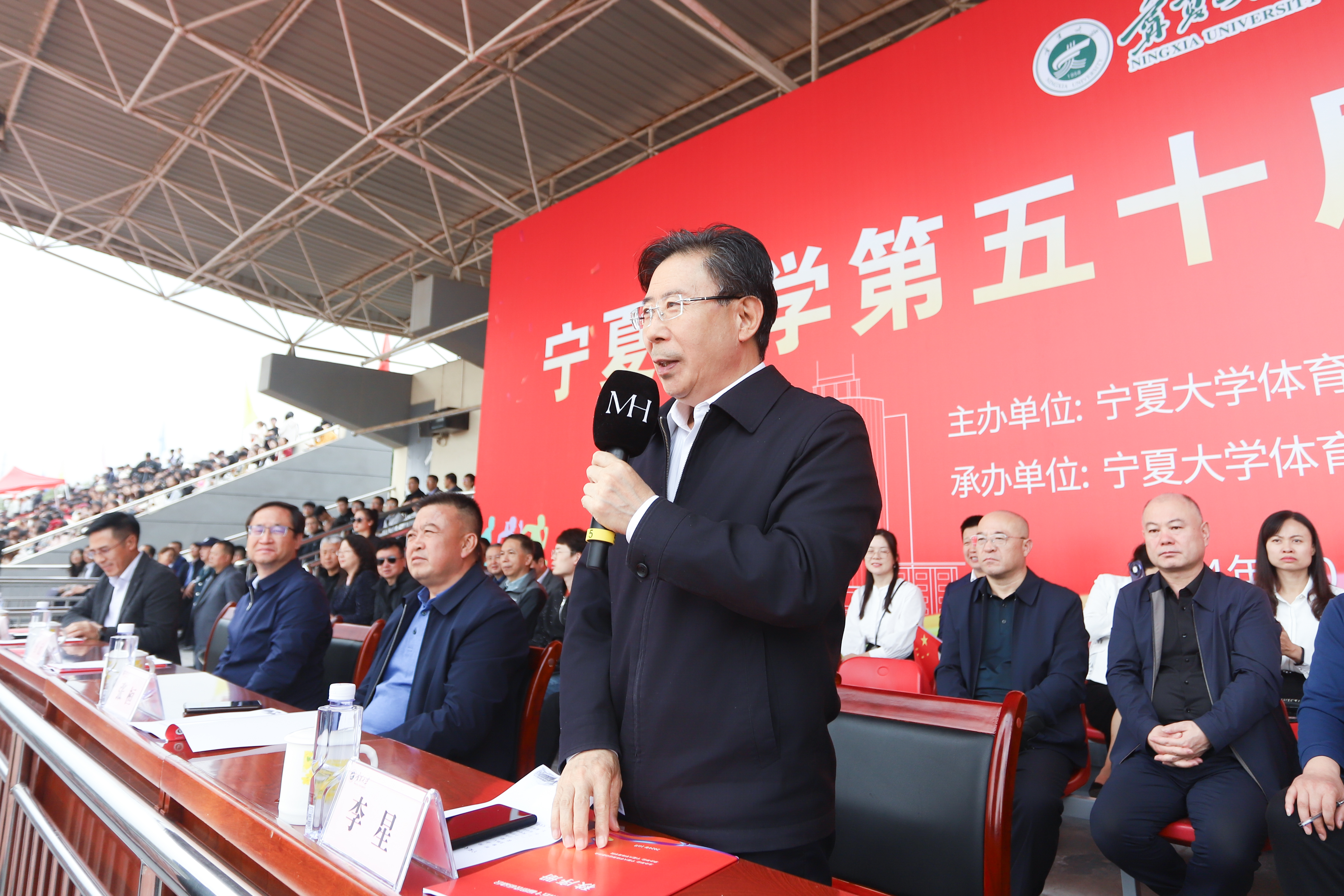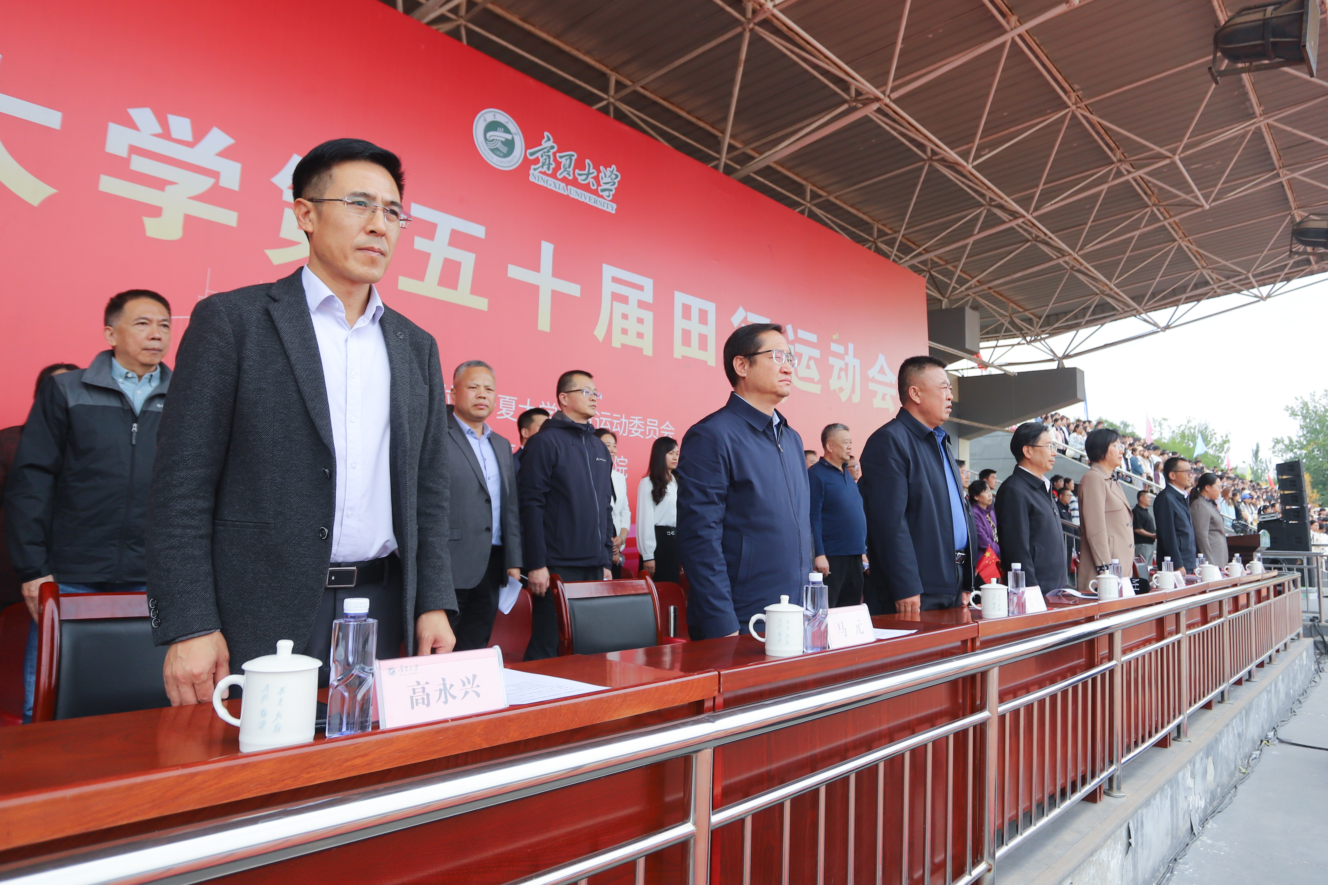 校党委书记李星宣布运动会开幕。全场欢呼雀跃,运动场上彩色气球腾空而上,随风飘向天际,寓意着宁大学子朝着更高、更远的梦想进发。