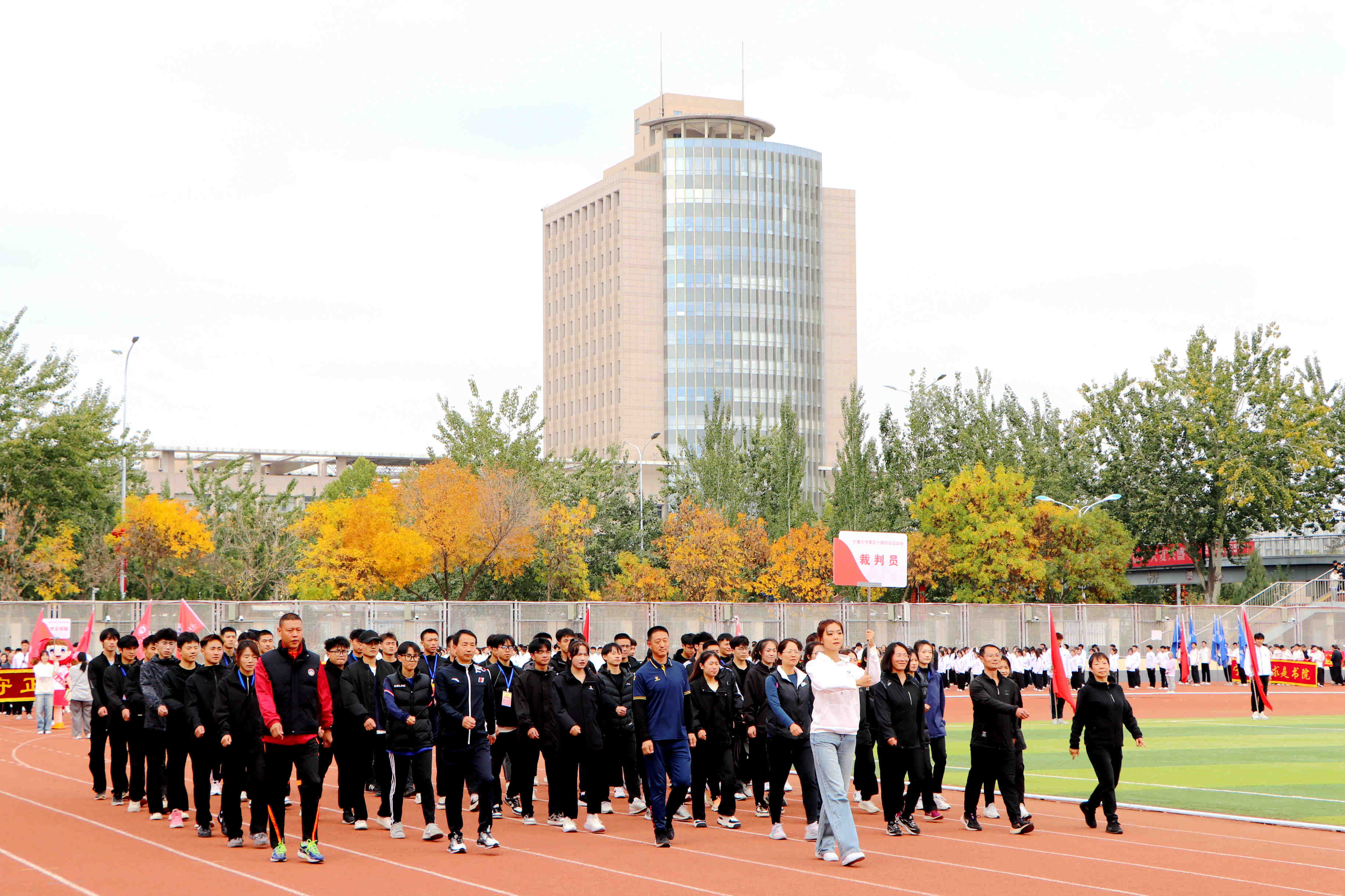【beat365唯一官方网站新闻中心讯 张景/文 张景、学生记者文轩轩、侯文贤、花子安、董昕玥、程博/图】金秋十月,秋高气爽,校园里彩旗飘扬,10月12日,beat365官网在怀远校区体育场举办第五十届田径运动会,全校10个代表队,737名运动员踏上赛场献礼华诞、青春筑梦。校领导李星、韩惠丽、张桓、黄河、马元、谢海涛,校党委常委、宣传部部长高永兴,校党委常委、组织部部长张永丽出席开幕式。开幕式由校党委常委、副校长黄河主持。
