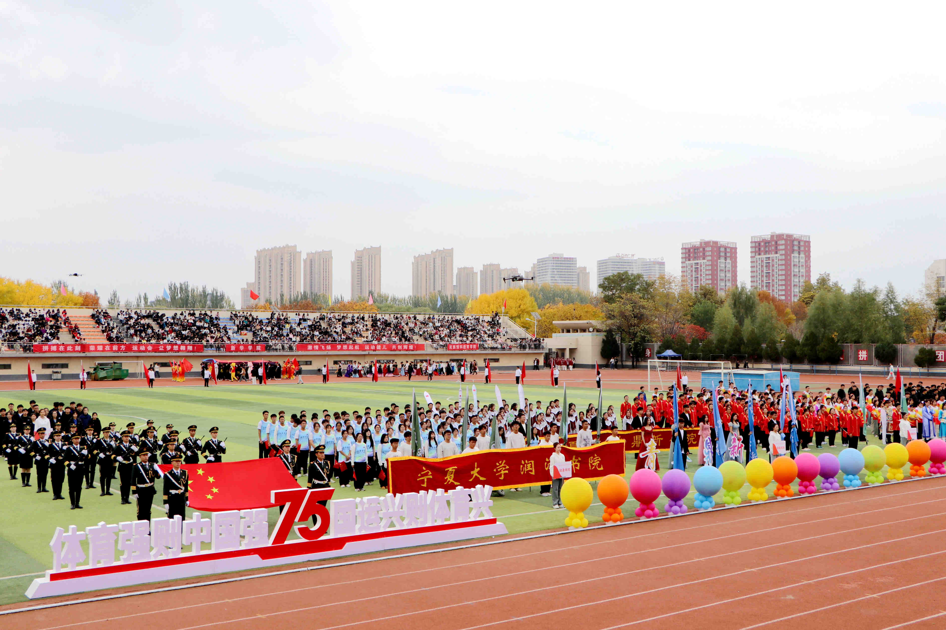 各书院方阵入场,他们各出新意,结合各自书院的特色和亮点,用精彩纷呈的队列表演,巧妙设计,精心编排,以青春之姿,绽放活力梦想,献礼新中国75周年华诞,展现出宁大学子奋发向上、积极进取的精神面貌。