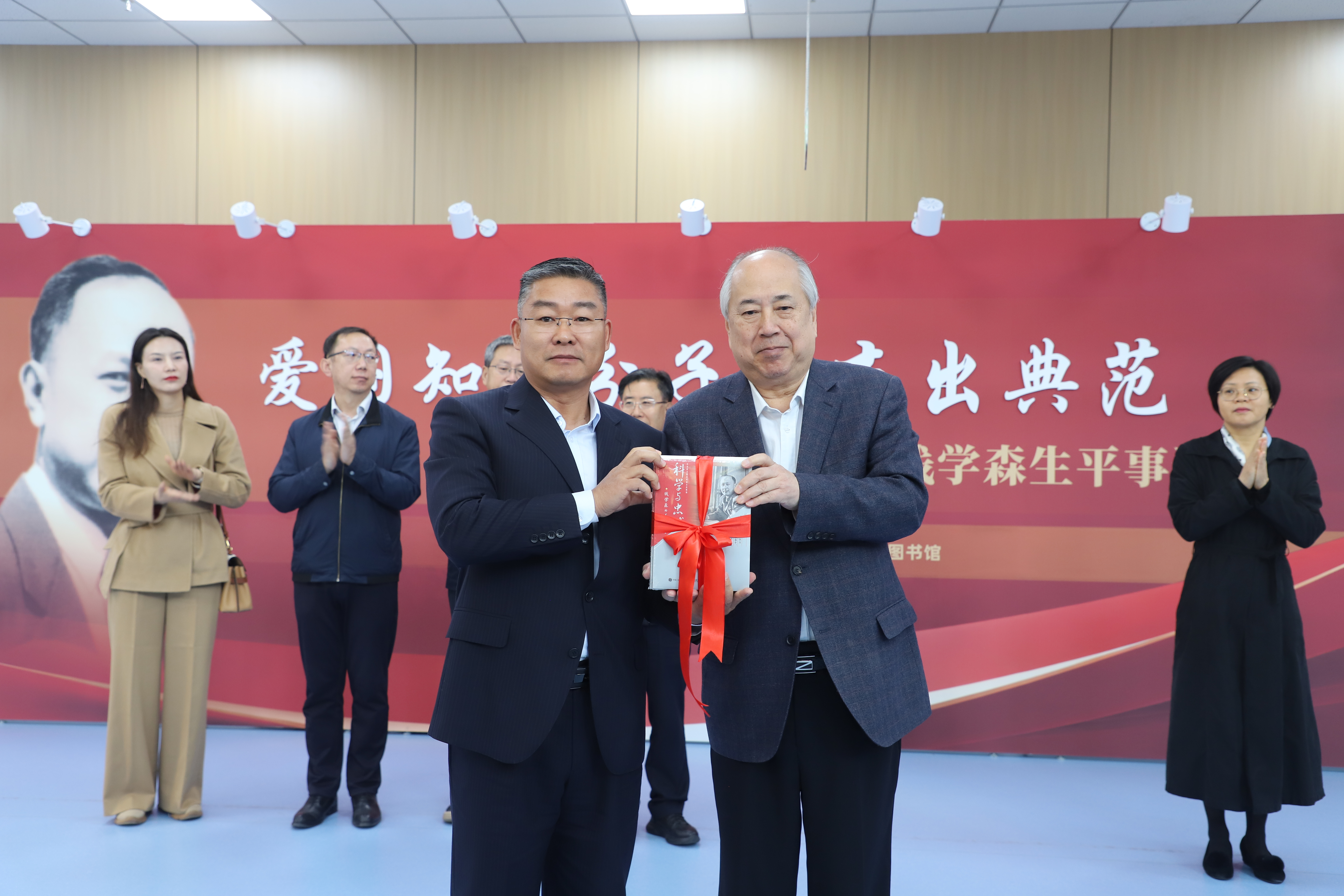 钱永刚教授为beat365唯一官方网站捐赠图书,图书馆馆长苗福生接受赠书。