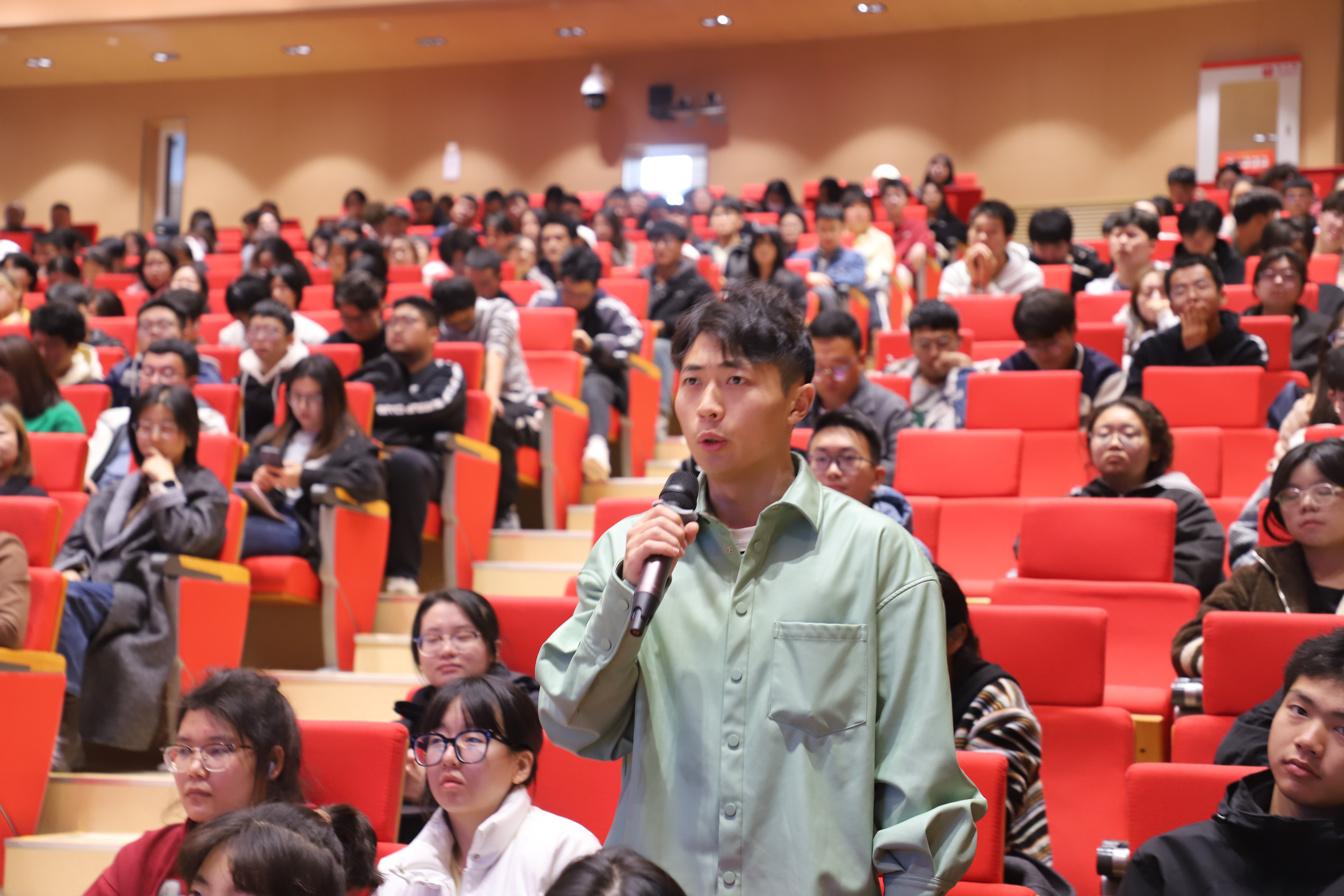 在交流互动环节,同学们踊跃举手提问,钱永刚教授耐心而细致地解答每一个问题,现场气氛热烈。