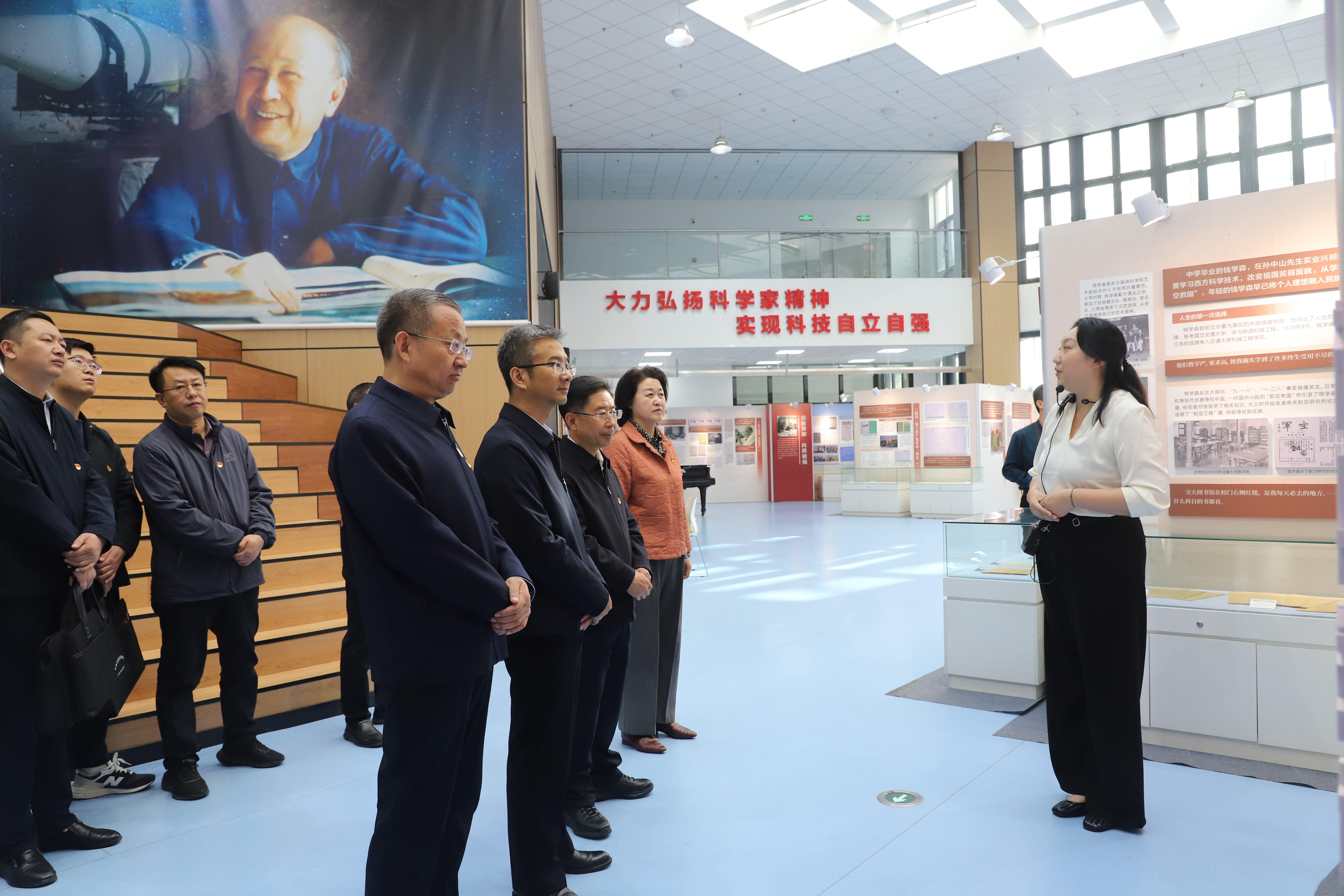 现场教学环节,全体参会党员一同前往参观贺兰山校区笃行楼“石榴花开润塞上---铸牢中华民族共同体意识的宁夏实践”教育展,深入了解中华民族交往交流交融的宁夏史话、中国共产党百年民族理论政策在宁夏的实践、习近平总书记对宁夏的亲切关怀、铸牢中华民族共同体意识的beat365唯一官方网站实践等四个专题内容,在参观学习中深化对“四个共同”中华民族历史观及党的民族理论政策的认识。在“钱学森生平事迹展”展馆,三位讲解员围绕钱学森同志“立志报国、奋斗成才”“筑梦航天、奠基伟业”“胸怀大局、不懈探索”“变不毛之地为沃土”“民族脊梁、科届楷模”的人生五次选择,介绍了钱学森的报国历程、卓越贡献与崇高品格。