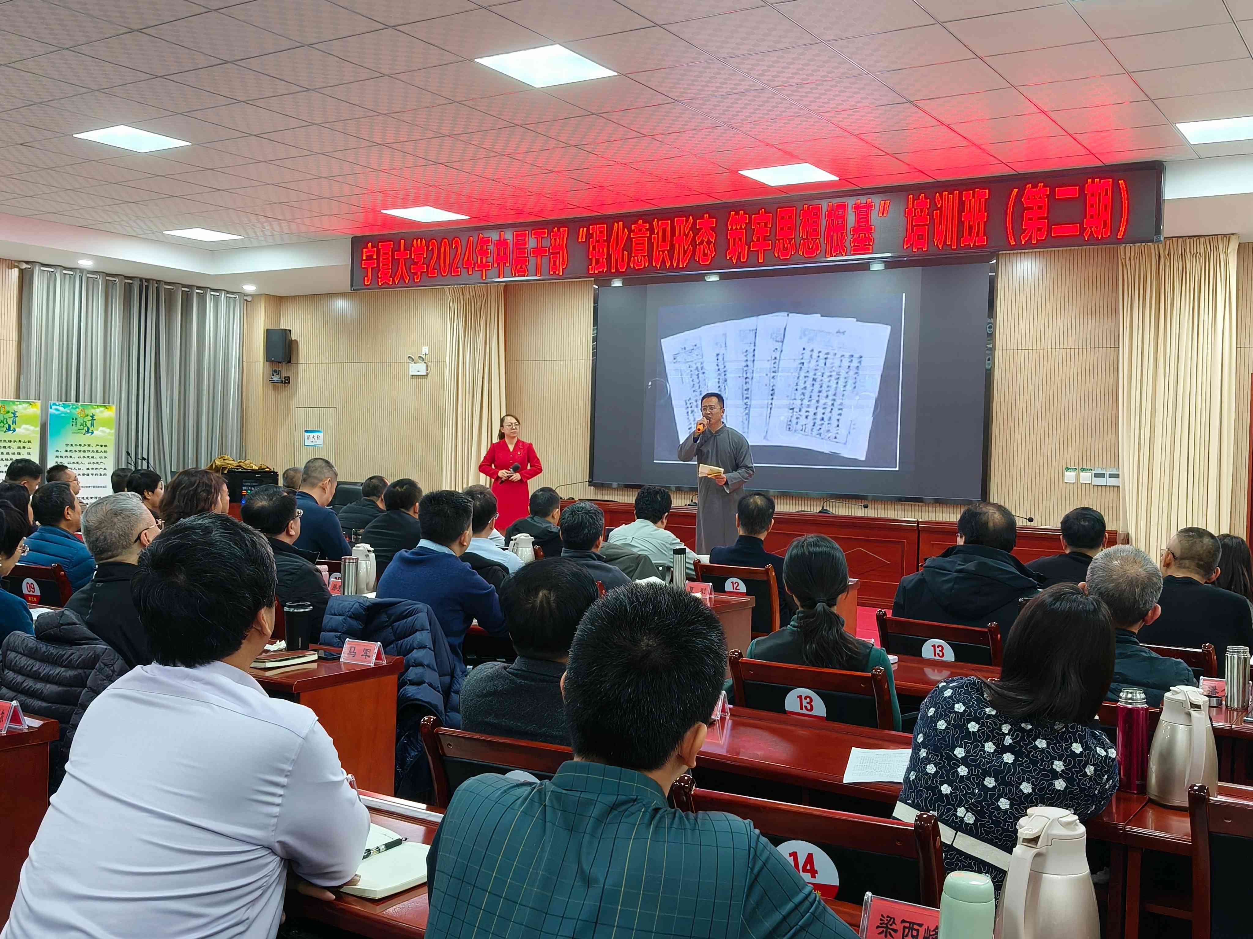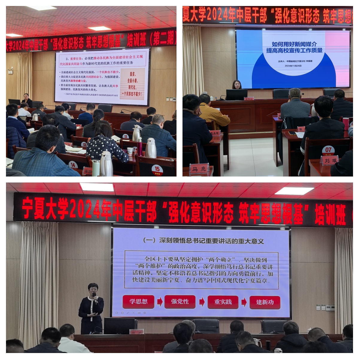 【beat365唯一官方网站新闻中心讯 李瑾/文 李瑾、刘兆强/图】为持续深入学习党的二十届三中全会精神,进一步加强干部队伍建设,提升中层干部新闻宣传技能和意识形态工作本领,学校于11月24日至29日在石嘴山市委党校(石嘴山市行政学院)举办中层干部“强化意识形态 筑牢思想根基”培训班(第二期)。各中层党组织分管新闻宣传业务的班子成员,各单位新媒体业务指导教师代表等63人参加培训。校党委常委、组织部部长张永丽主持开班仪式。