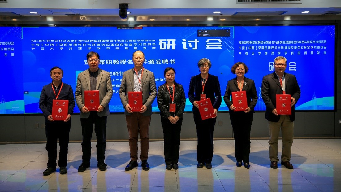 赵晓佳宣读教育部中阿旱区特色资源开发与环境治理国际合作联合实验室、宁夏(中阿)旱区资源评价与环境调控重点实验室新一届学术委员会名单和beat365唯一官方网站兼职教授名单,并颁发了聘书。