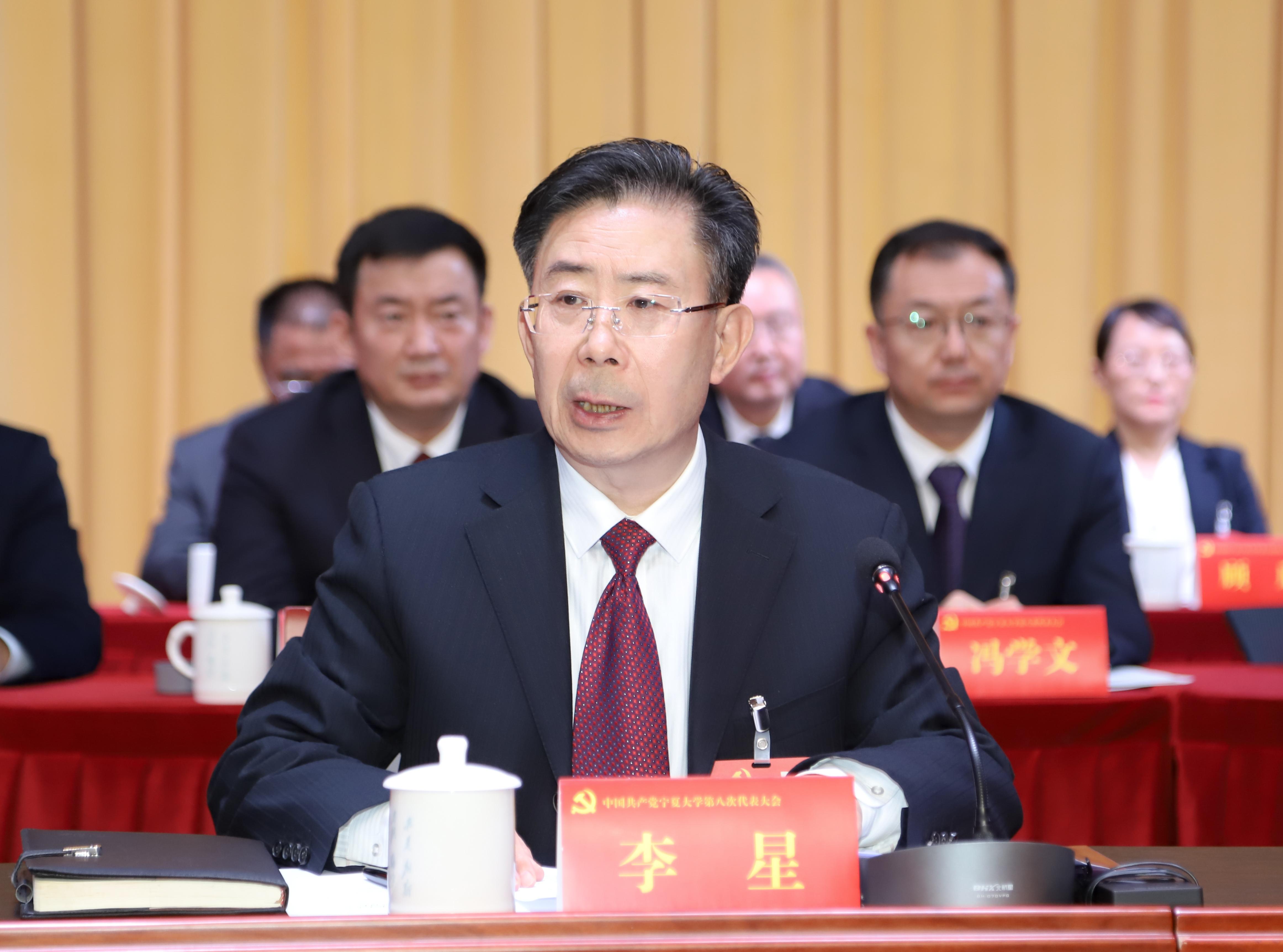 大会号召,全校各级党组织、全体党员和广大师生员工,要更加紧密地团结在以习近平同志为核心的党中央周围,凝心聚力、勇担使命,守正创新、实干兴校,以永不懈怠的精神状态和一往无前的奋斗姿态,在一代代宁大人创造的辉煌业绩基础上,在建设高水平西部一流大学的新征程中,勇创佳绩,再谱新篇,为中西部高等教育振兴付出“宁大努力”、探索“宁大模式”,为加快建设美丽新宁夏、奋力谱写中国式现代化宁夏篇章贡献“宁大力量”,为强国建设、民族复兴伟业作出“宁大贡献”。