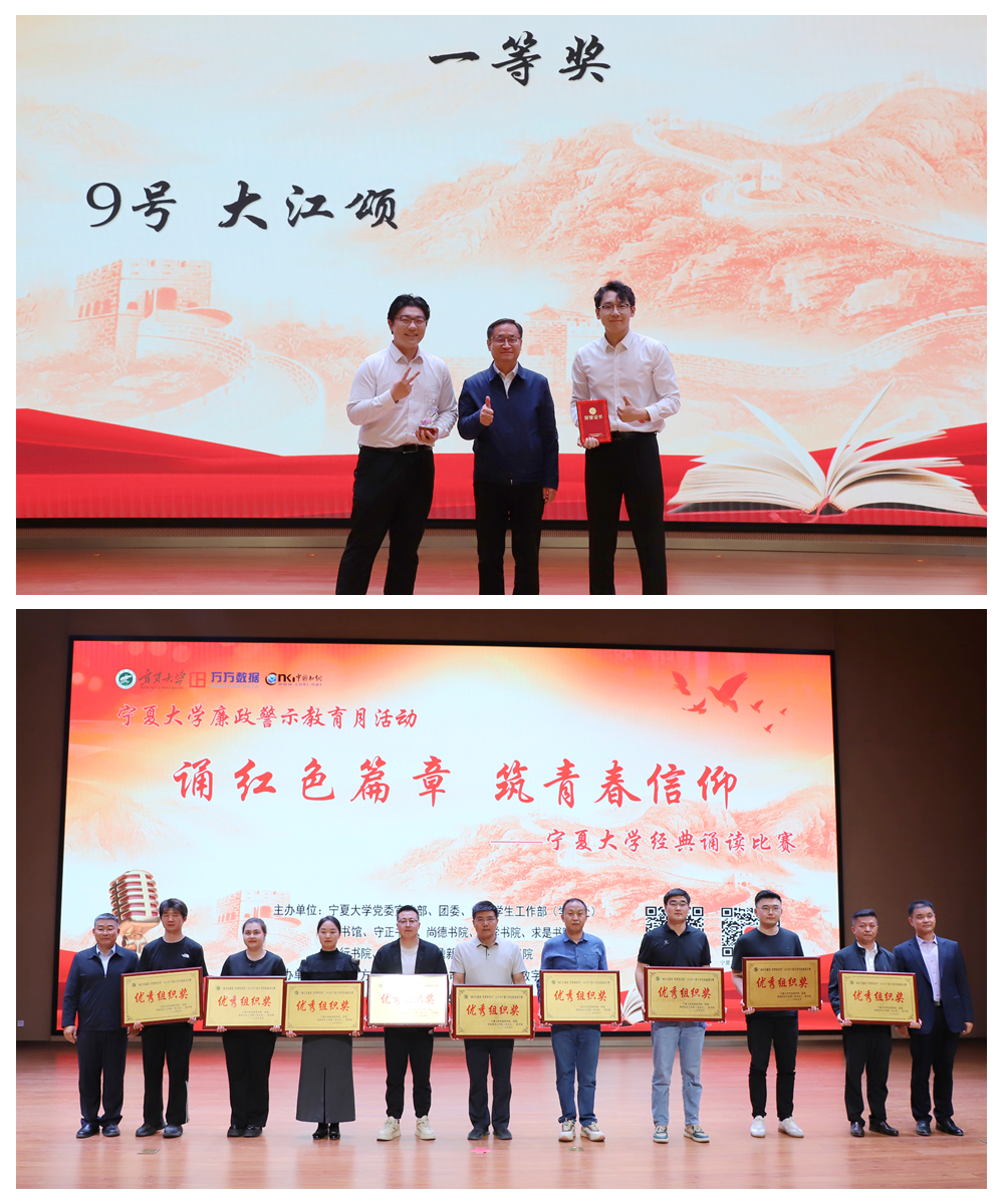 【beat365唯一官方网站新闻中心讯 杨雯、图书馆/文 姬晓姗/图】为深入贯彻落实党的二十大精神,激发青年学子的爱国情怀与社会责任感,5月14日,“诵红色篇章 筑青春信仰”beat365唯一官方网站经典诵读比赛决赛在贺兰山校区笃行楼一楼报告厅精彩开赛,比赛采用线下比赛和线上直播联动的方式进行。经典诵读比赛是beat365唯一官方网站廉政警示教育月系列活动之一,由党委宣传部、团委、党委学生工作部(学生处)、图书馆及各书院联合主办,北京万方数据股份有限公司、同方知网数字科技有限公司协办,旨在通过诵读红色经典,激发广大青年学子的爱国情怀与社会责任感,引导青年学子铭记历史、传承精神,打造沉浸式校园文化品牌。校党委常委、副校长黄河,校党委常委、纪委书记马元参加活动,自治区纪委监委宣传部四级调研员周红奉,北京万方数据股份有限公司成都公司、同方知网数字科技有限公司西部区相关负责人作为特邀嘉宾出席活动。