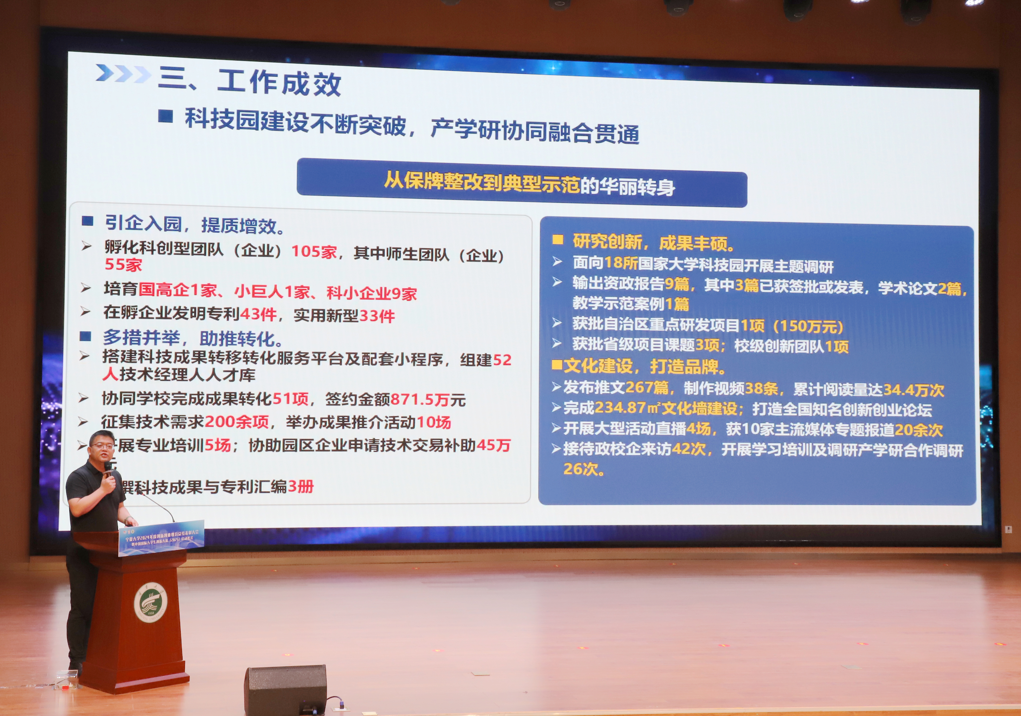 黄河向各位来宾致以热烈的欢迎,同时向近年来在各个创新创业竞赛中取得优异成绩的师生表示祝贺,他期待在2025年的创新赛场上,更多师生能以“沙枣树精神”为底色,为高等教育高质量发展贡献宁大智慧。