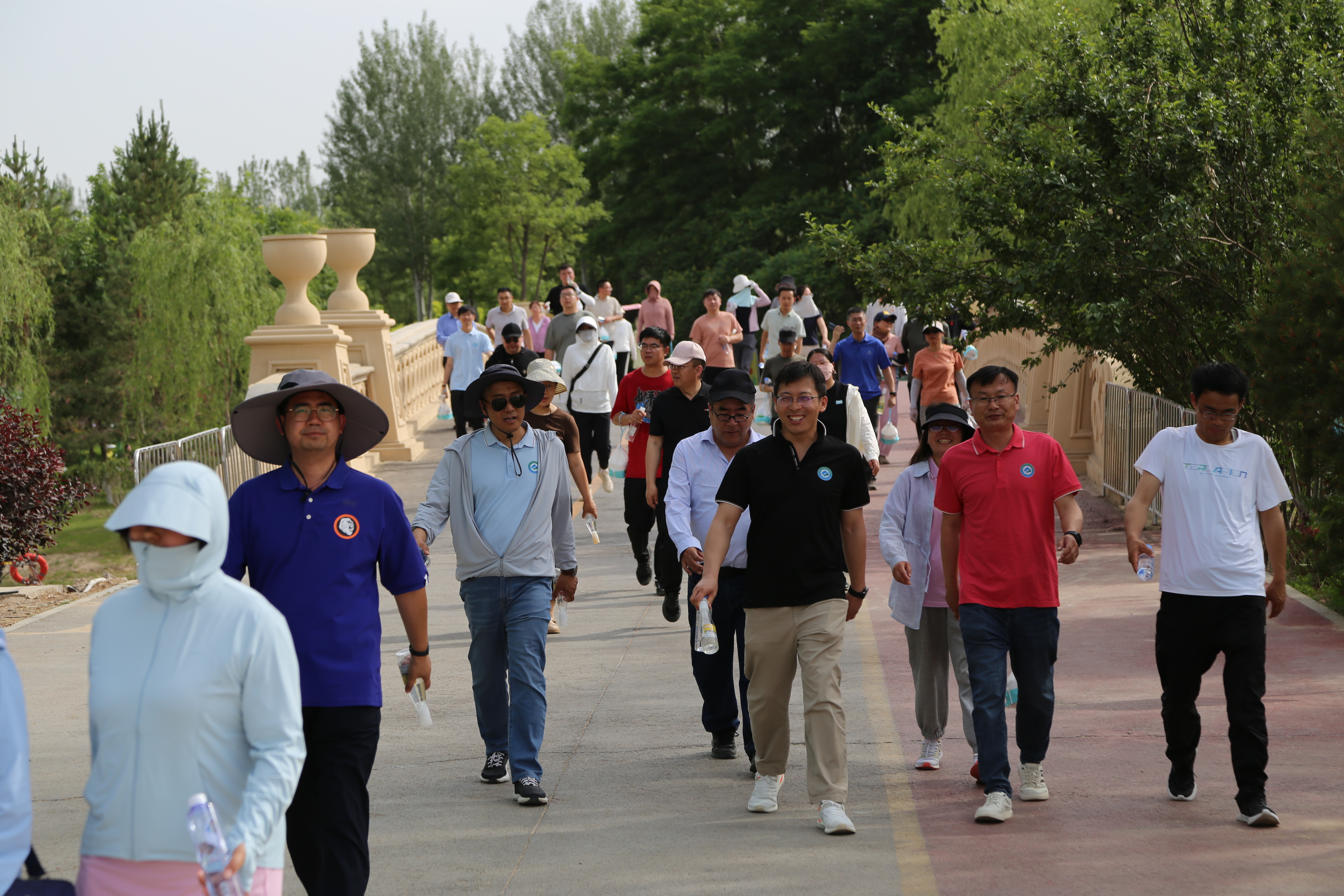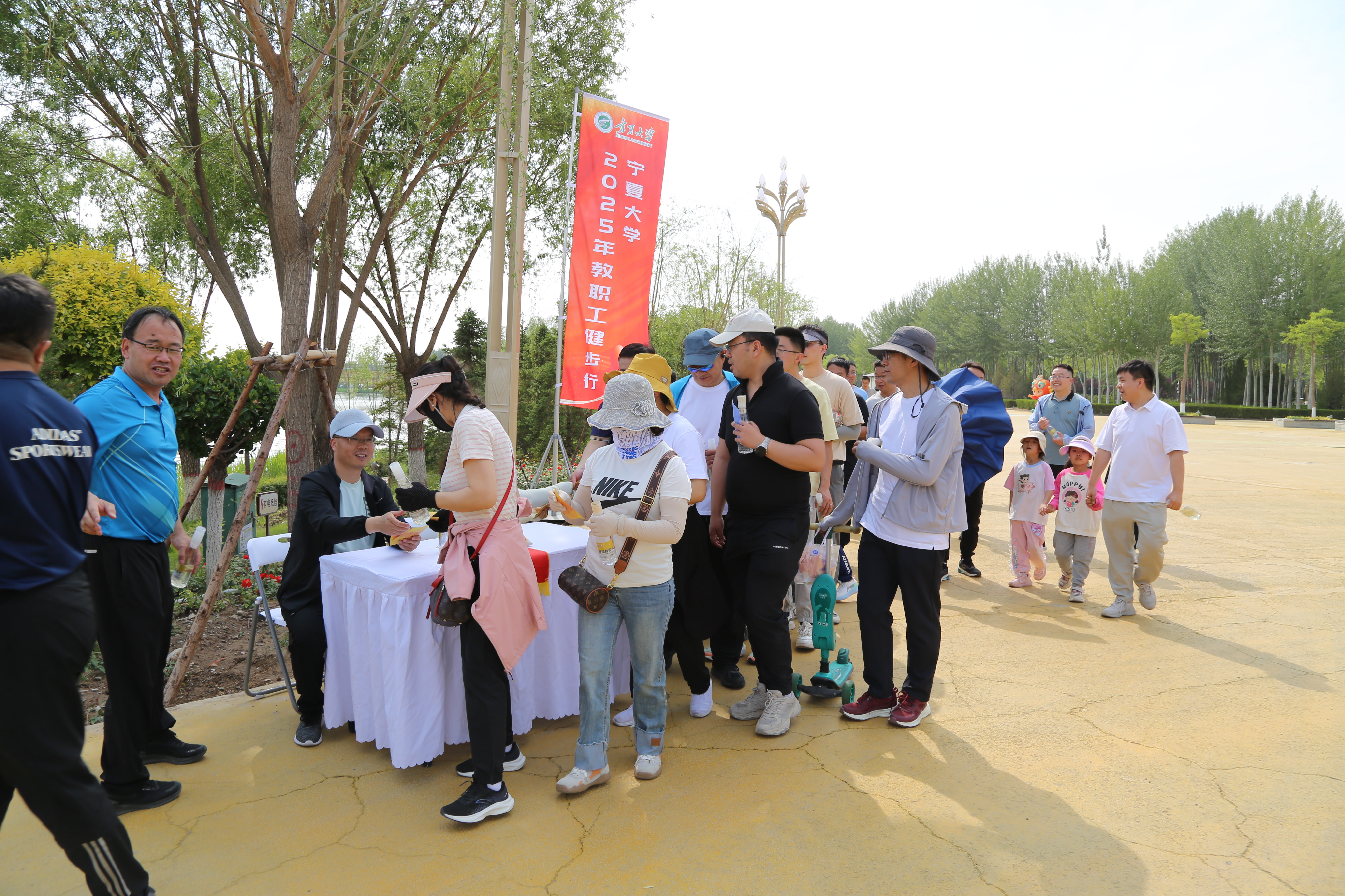 此次健步行路线围绕银川花博园核心景区,由校工会进行了特色区域设计,沿途绿树成荫、景色宜人。教职工们迈着矫健的步伐,沿着精心规划的路线有序出发。在行走过程中,他们一边欣赏花博园的优美景色,呼吸清新空气,一边交流工作、生活中的点滴趣事,不时发出开心的笑声。健步行途中设置了六个趣味打卡点、一个补给点和一个纪念品发放点,采用打卡集票领取纪念品的方式鼓励教职工们积极参与。